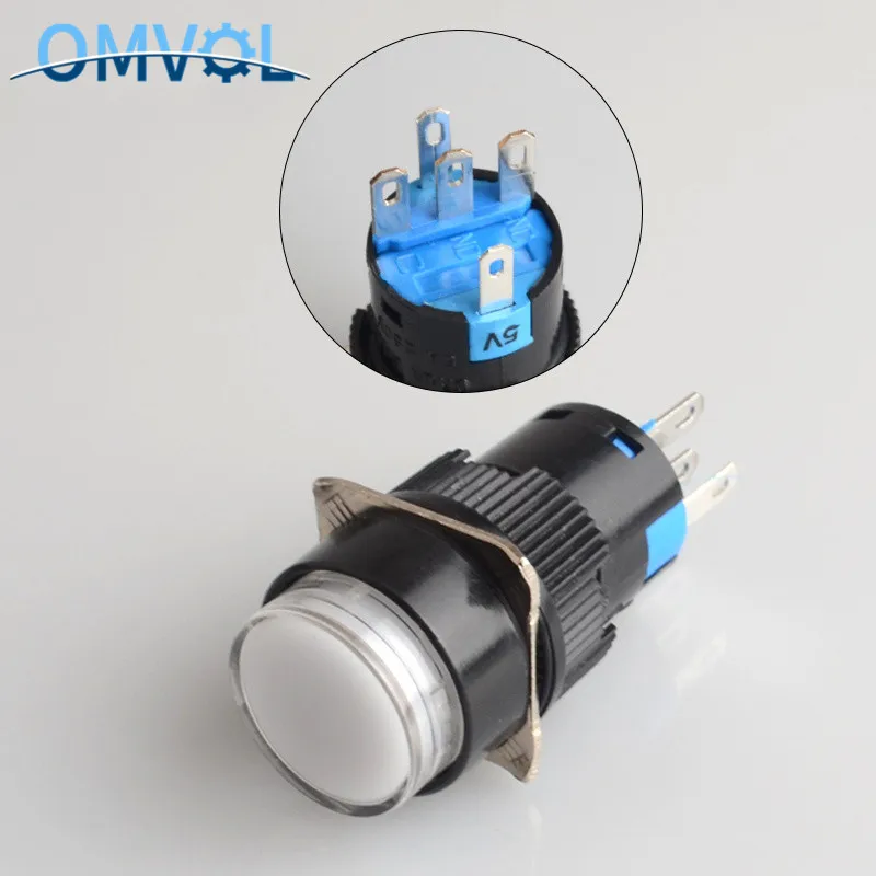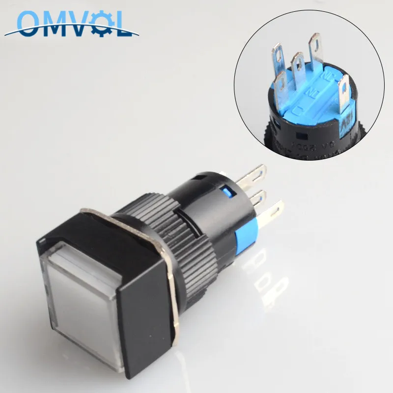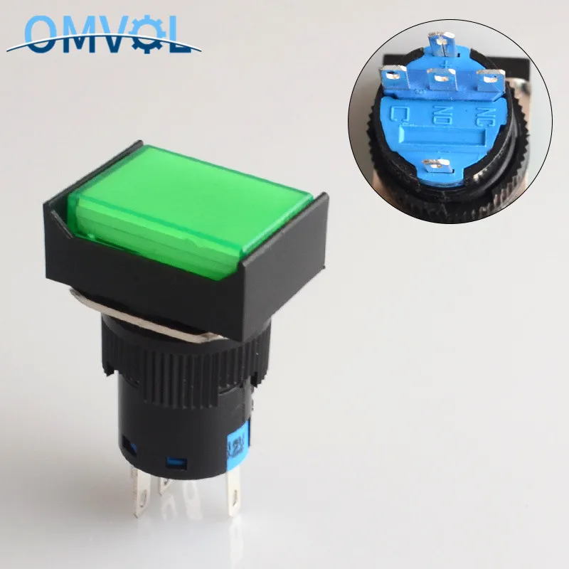 Прямоугольный кнопочный переключатель, 16 мм, светодиодный контактов, 5 В, 12 В, 24 В, 220 В, 1 шт.