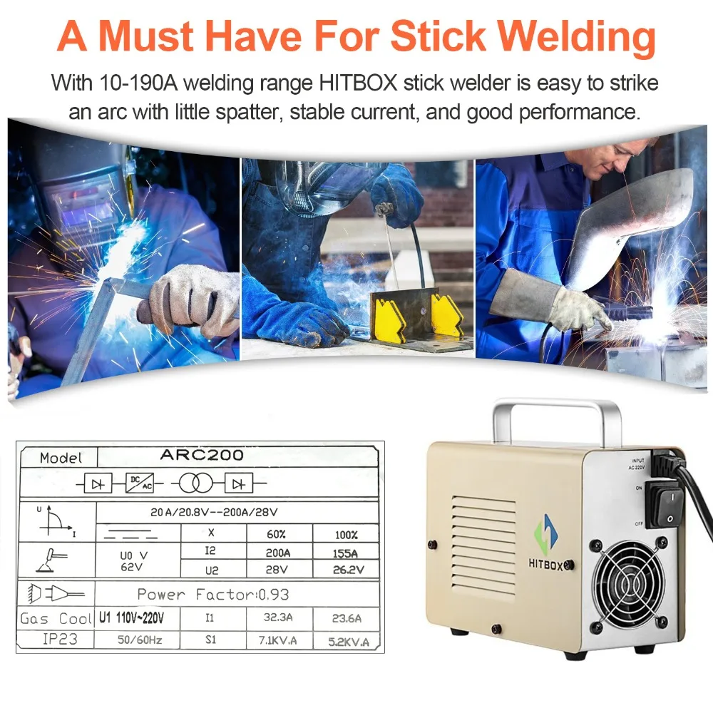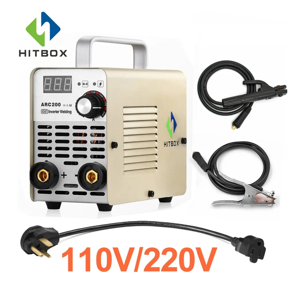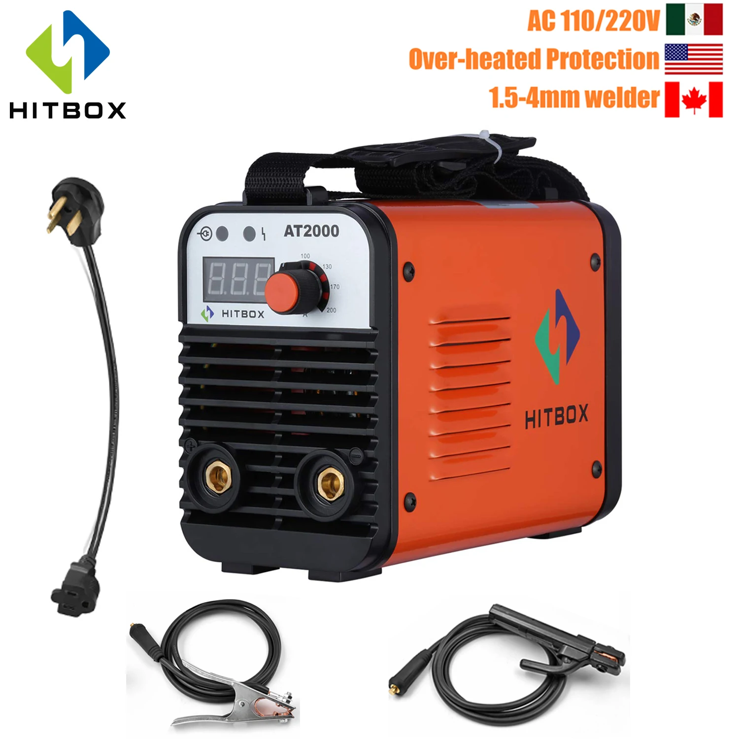 Сварочный аппарат для дуговой сварки HITBOX 110 В 220 В, сварочный аппарат для MMA AT2000 ARC200, инвертор с защитой от перегрева, двойное напряжение 90-240 В