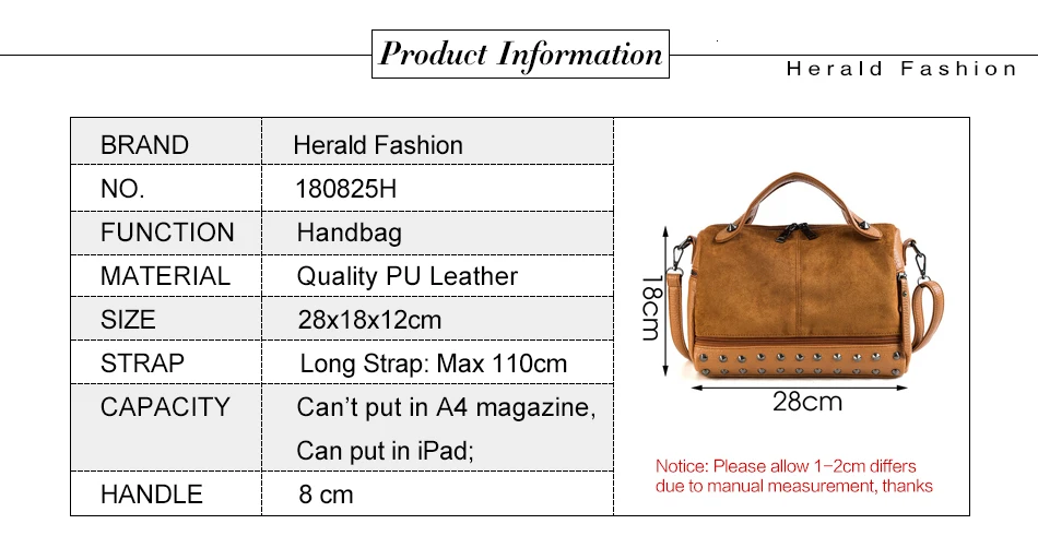 Herald модная сумка из нубука, женская сумка с заклепками, большая ...