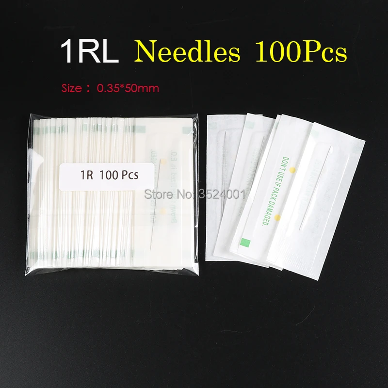 Иглы для татуировок 1RL Одноразовые стерилизованные Профессиональные для аппарат в виде ручки для татуажа бровей перманентного макияжа набор 100 шт. иглы PMU 1R