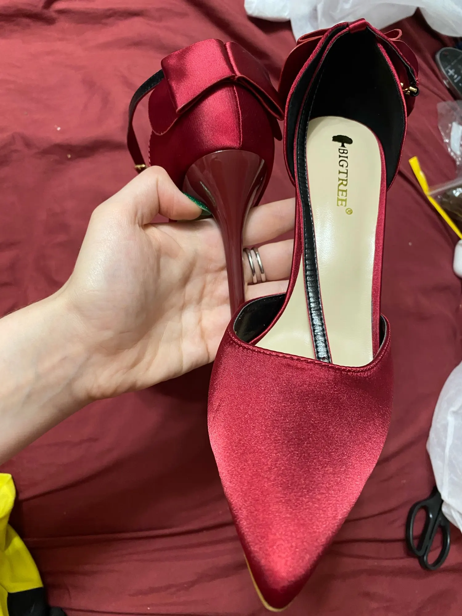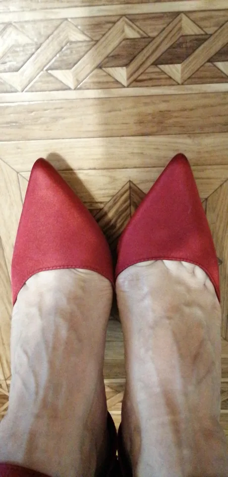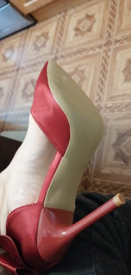 Пришли туфли за 1 месяц и 5 дней до Москвы! С продавцом не общалась! На свой примерно 41 русский размер, взяла азиатский 43 (26,5 см). Каблук вроде как 8 см, не измеряла. Нога влезла, всё удобно и комфортно, возможно острый мыс в этом помогает! Подъем не беспокоил! Переживала что они тонкие и хрупкие - ещё не выкуривала, но при примерке всё выдержали, было неплохо! Взяла за 1060 рублей примерно! Цена = качество! Думаю что вернусь за ещё каким-нибудь цветом. Цвет полностью соответствует, мыски одинаковые, единственное что, помялись бантики, но надеюсь это разгладится! На ноге выглядят очень красиво! Надеюсь, не подведут при носке и прослужат долго верой и правдой!