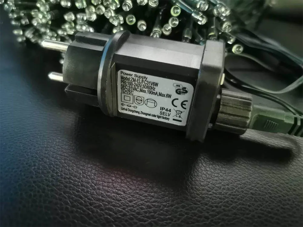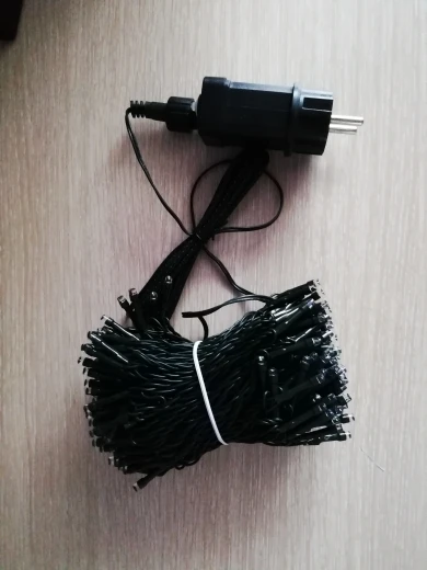 Гирлянда просто бомба! Для елки зелёный тонкий провод, который легко накрутить на ветки и не бросается в глаза, это находка! Гирлянда сделана отлично. Меня смущала вилка, когда выбирала. Оказалось что в вилку встроен переключатель режимов. Я довольна как слон. Посылка шла полторы недели до Спб.