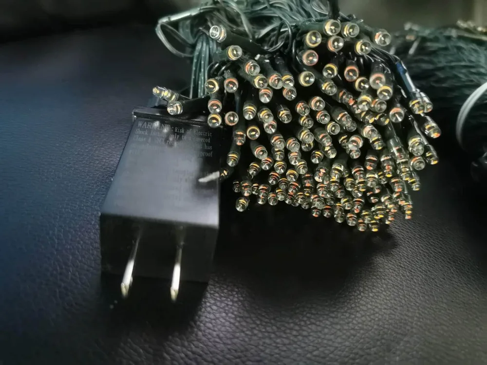 Прекрасная гирлянда! Прибыла за 2 недели. Попыталась пересчитать лампочки, но сбилась ) Примерно 500 и есть. Вот только одной как будто нет... Наверное, это просто место соединения двух проводов... Цвет провода темно-зелёный, а вилка чёрная. Работает исправно, 8 режимов, кнопка переключения на самой вилке. Большое спасибо! Очень довольна покупкой!