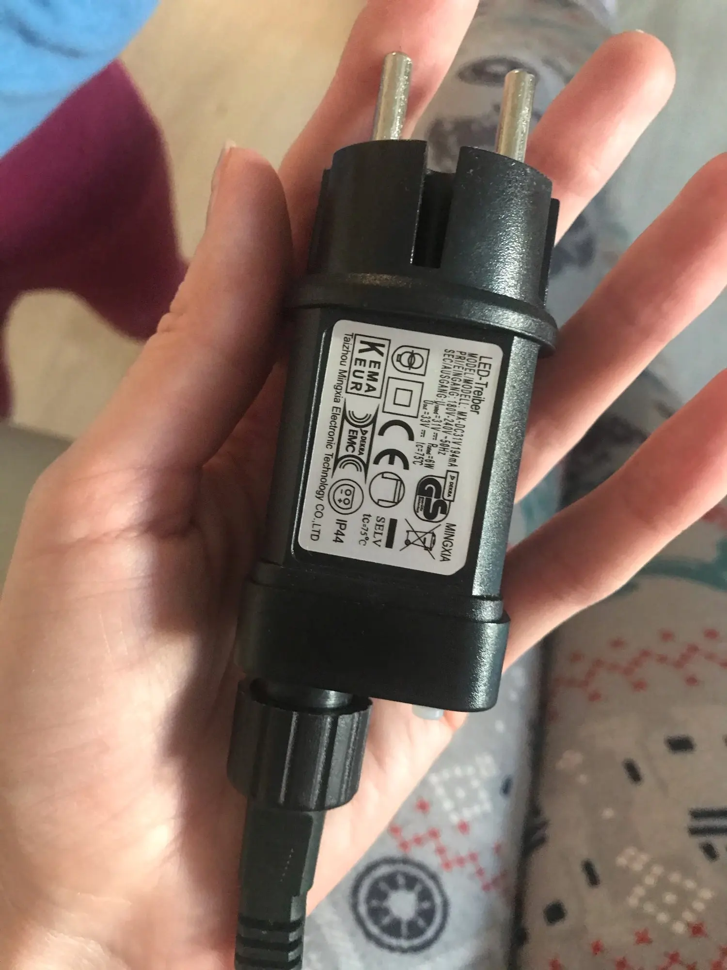 Не ожидал, что такие яркие диоды! Блок питания в штепсельной вилке, кнопка режима тоже.