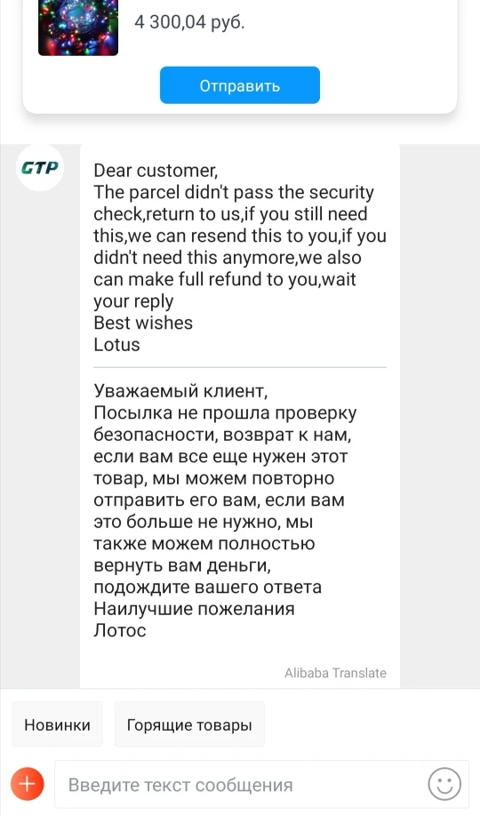 Прошёл месяц, а товар всё ещё в Китае. Продавец, после связи сним, написал, что посылка не прошла контроль безопасности и рекомендовал открыть спор для возврата денег. Деньги вернули. Новый год испорчен, а так хотелось украсить загородный дом и большую ёлку.