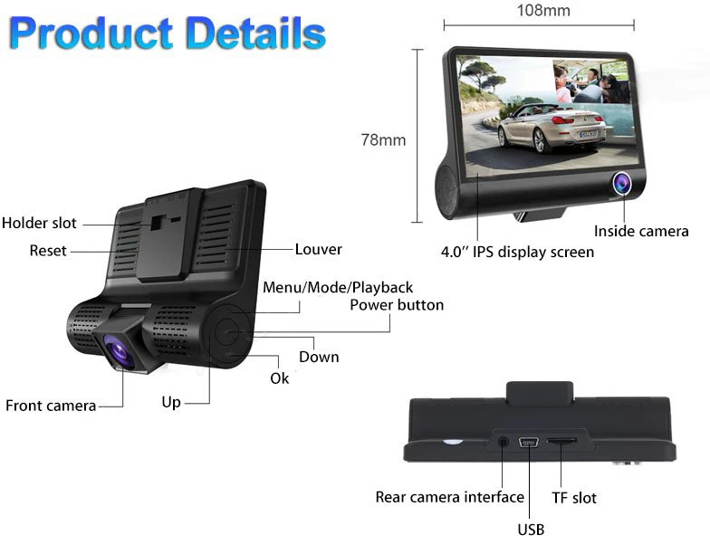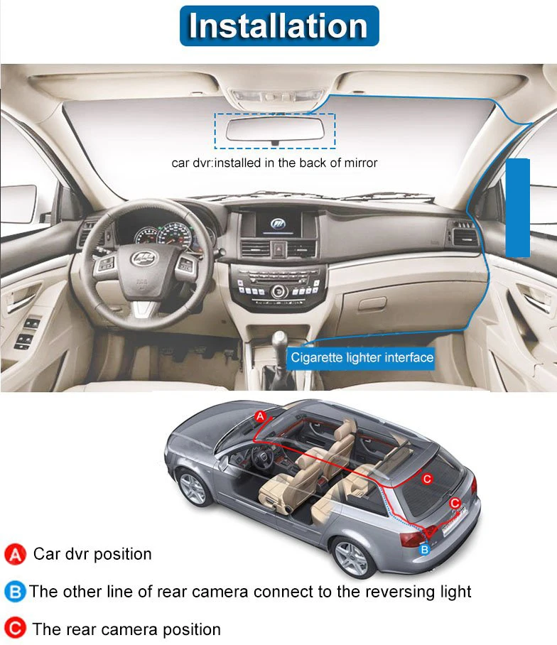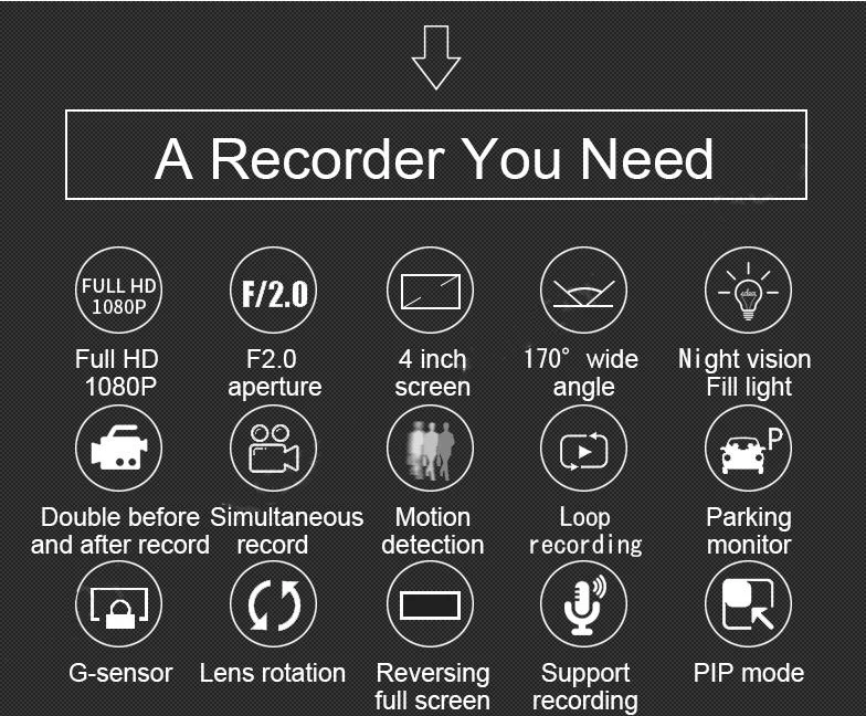 If you installed our back camera,When reversing,dvr automatically switches to display the rear lens image, and the full screen displays the rear environment assisted reversing.
