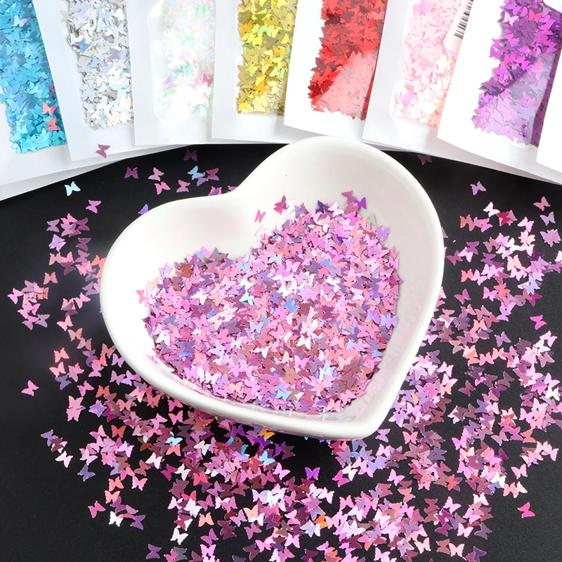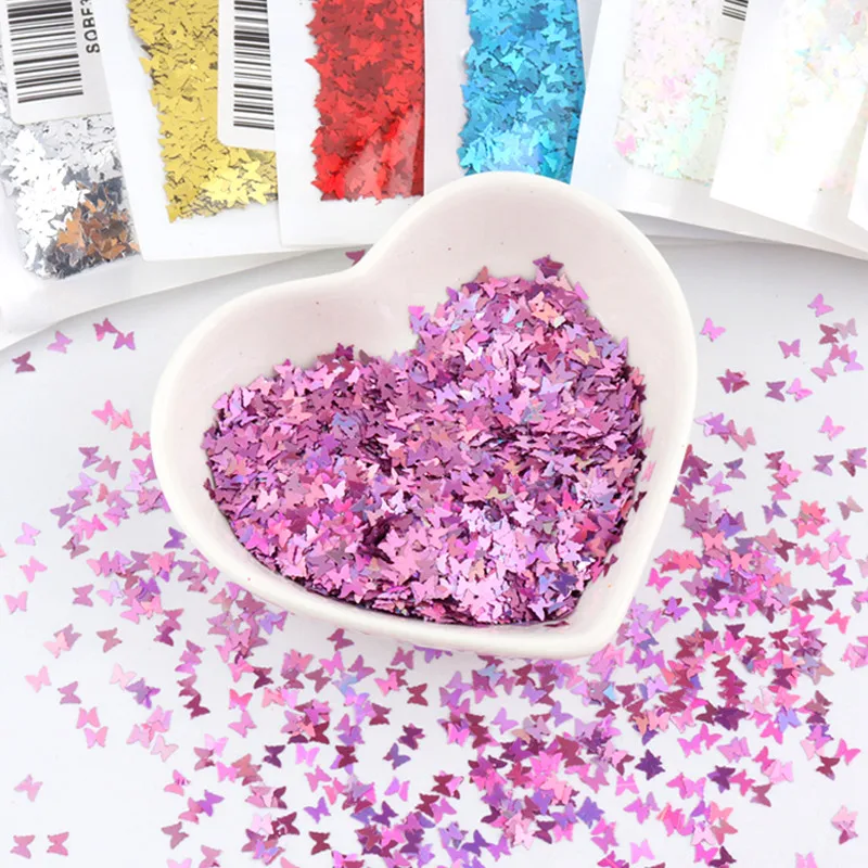 Голографические Блестки для ногтей в виде бабочки 3 мм, искусственные блестки, экологически чистые Блестки для дизайна ногтей, свадебное украшение, 8 г