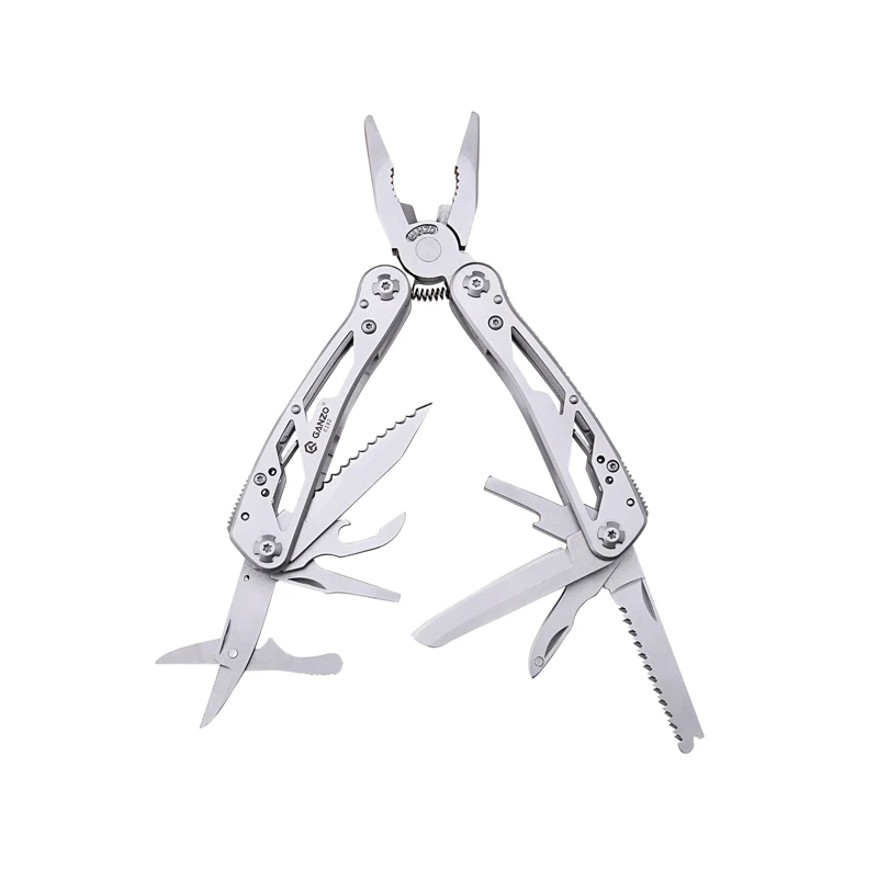 Многофункциональный инструмент Ganzo G202-это многофункциональный инструмент и незаменимый инструмент во время кемпинга, просто прогулки или дома. Размер в сложенном виде 10,5x1,8 см. В комплект входят 25 инструментов!