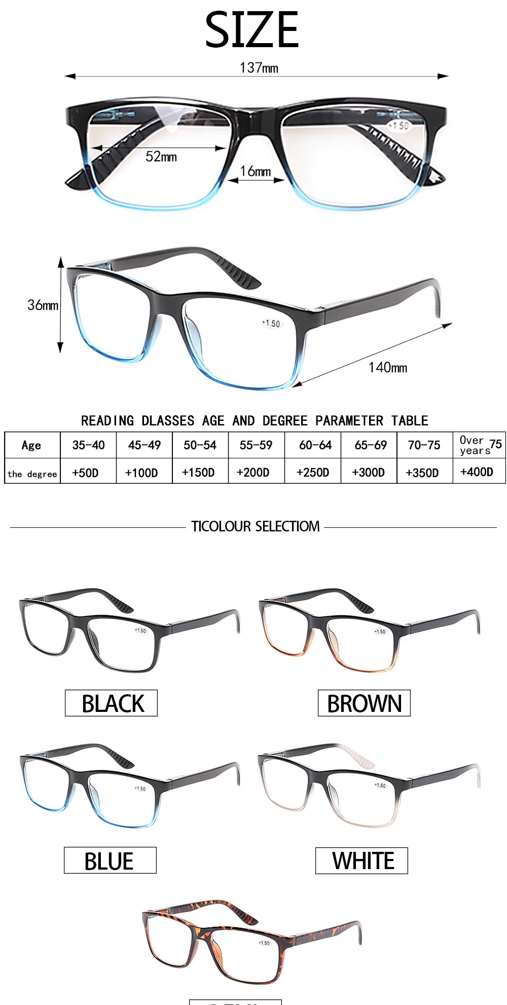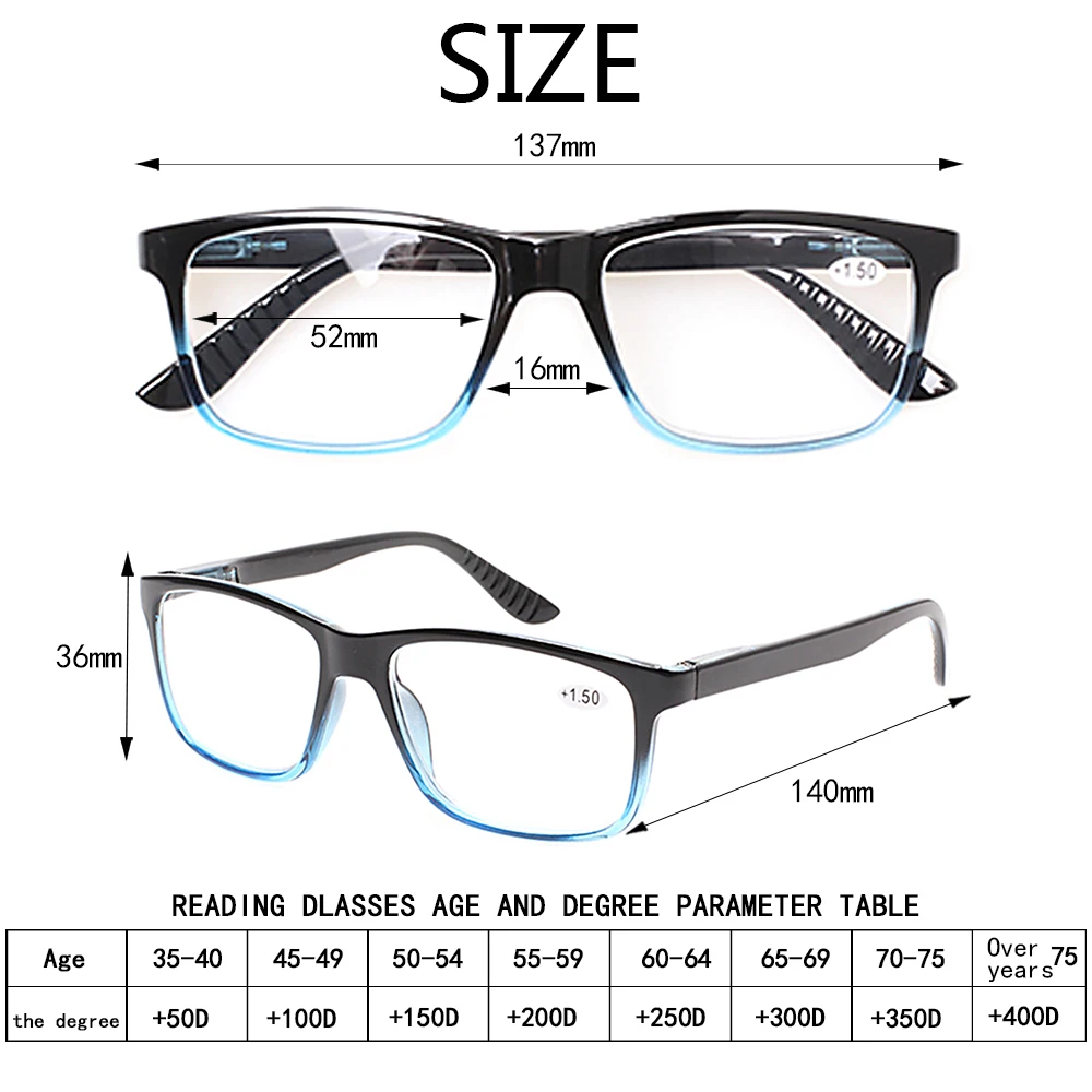 5 шт.упаковка, легкие очки для чтения в прямоугольной оправе