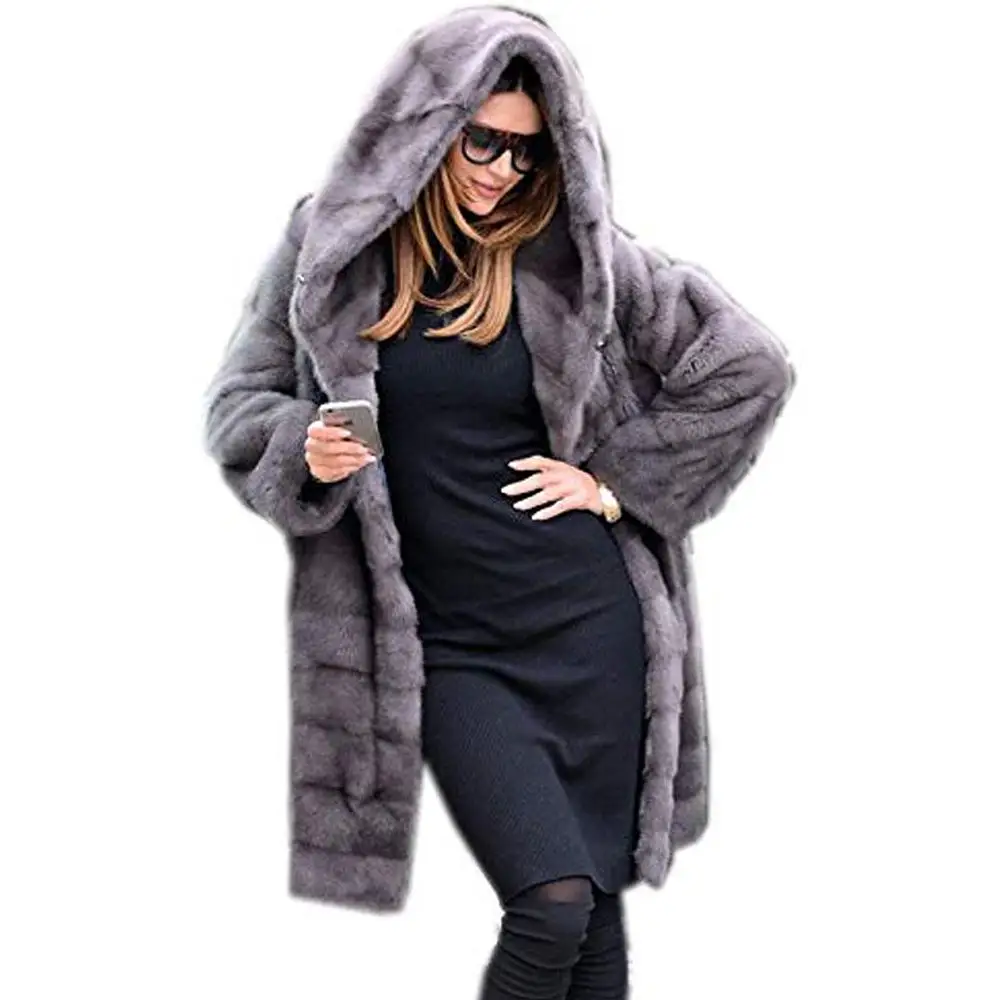 Зимнее пальто из искусственного меха норки с капюшоном, роскошное п...