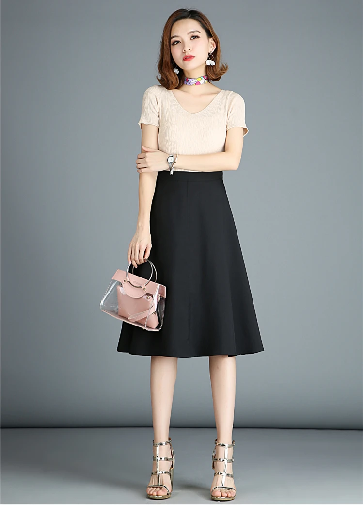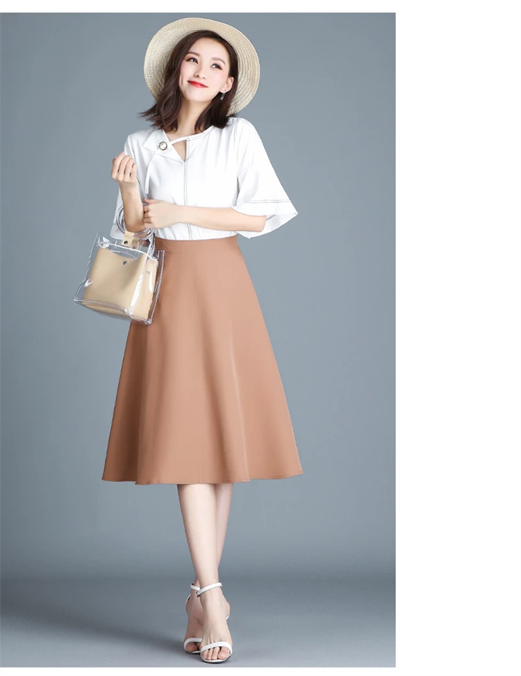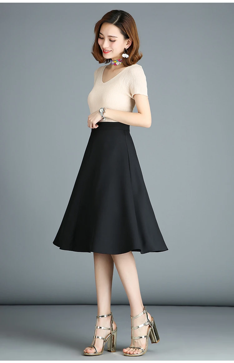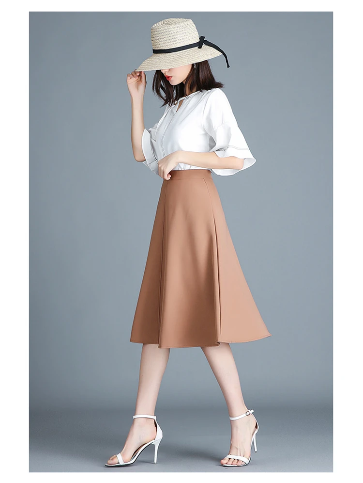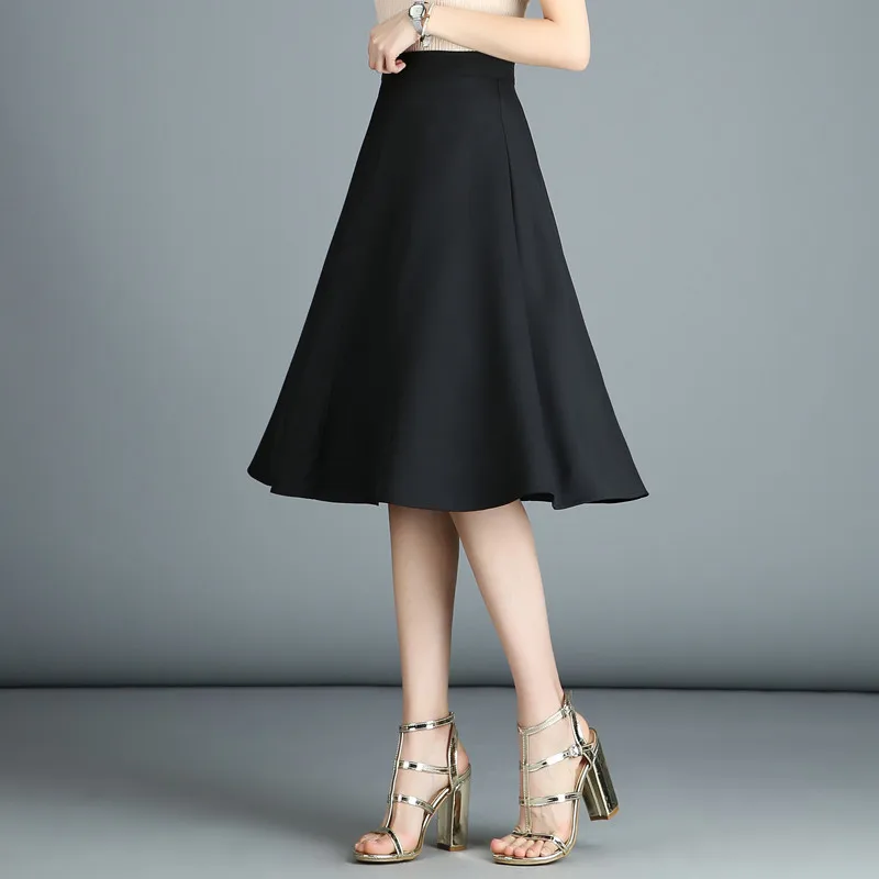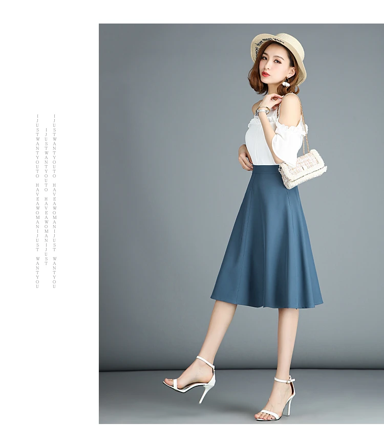 Юбка-миди с высокой талией для женщин, офисная, повседневная, плиссированная, синяя, черная, хаки, на осень, 2021