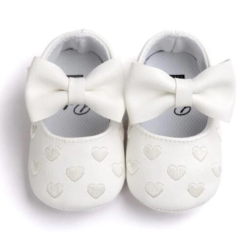 Обувь для новорожденных девочек и мальчиков, красивая повседневная обувь для детской кроватки, 3 стиля, кожаная обувь с принтом сердца на мягкой подошве, на крючках, для 0-18 месяцев