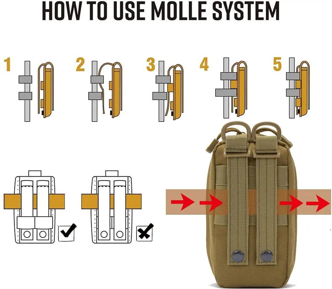 * Высококачественный нейлоновый материал, водонепроницаемый, устойчивый к коррозии, прочный, с учетом комфорта, более мягкий* Дизайн Molle, может быть загружен в тактический жилет, ремни, пояс и другое оборудование для использования* Застежка-молния, может быть полностью открыта, есть небольшая Внутренняя лента для облегчения фиксации предметов* Маленький размер, легко носить с собой, прост в использовании