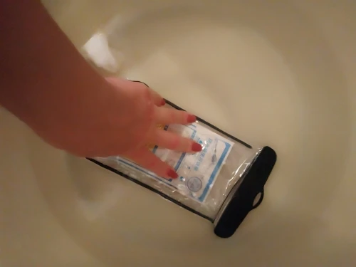 подержал с грузом в ведре воды, внутри сухо, должно спасать телефон на воле, лучше ещё поплавок приделать к шнурку, тогда точно не утопите свой телефон.