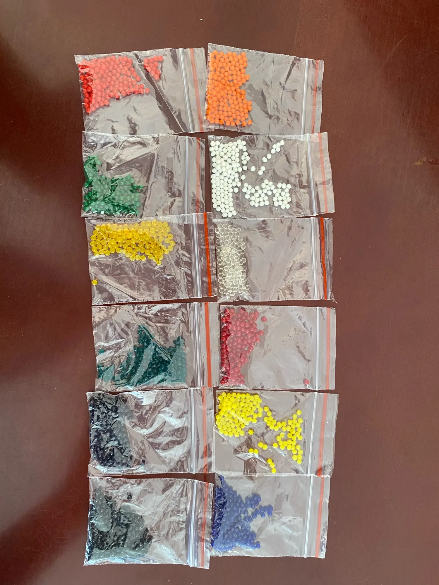 Здравствуйте. Я не подсчитывал их от 1 до 1. Но с учетом полученного количества. Я думаю, что у меня есть правильный аккаунт. Слишком плохо, Каждая сумка представляет собой смесь всех цветов. Я бы хотел сумку по цвету. Спасибо вам