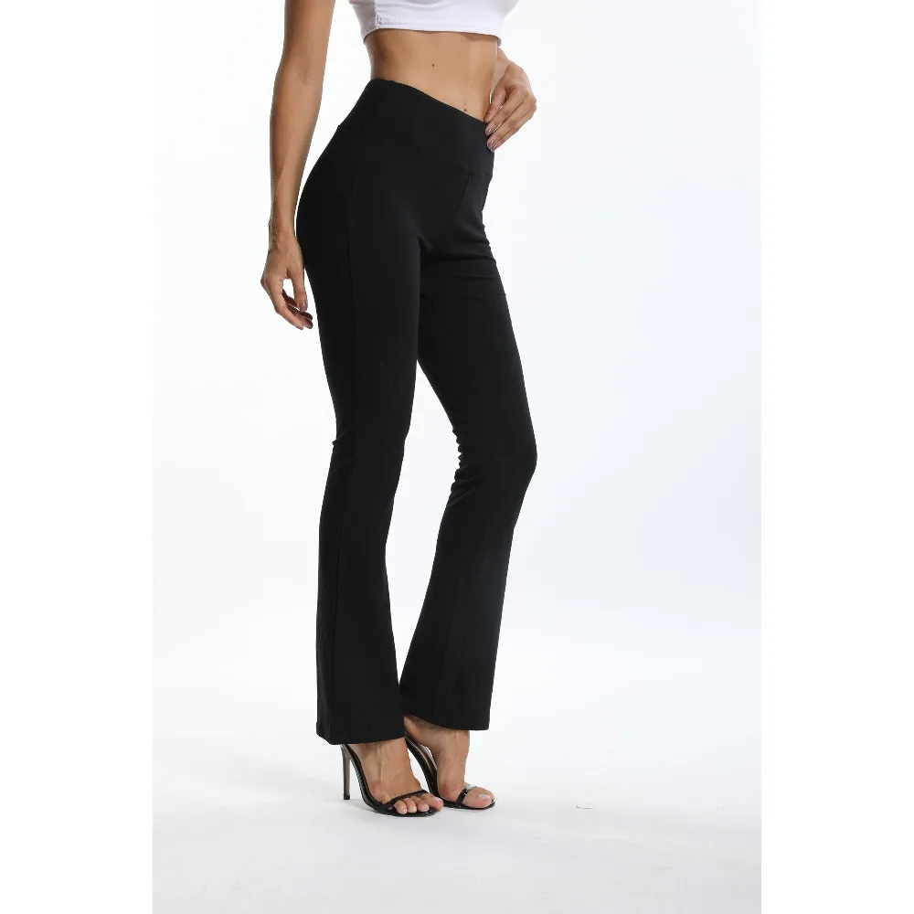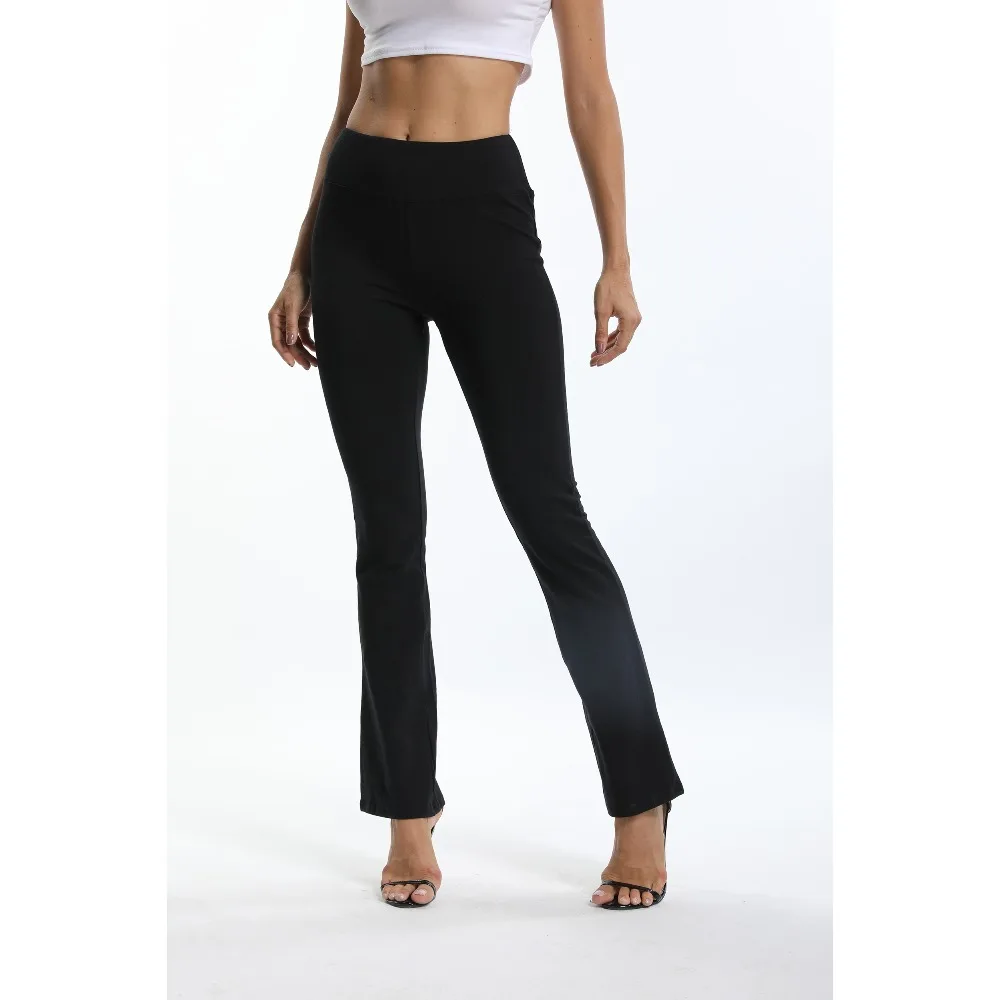 Брюки женские эластичные черные, с высокой талией и широкими штанинами, из полиэстера