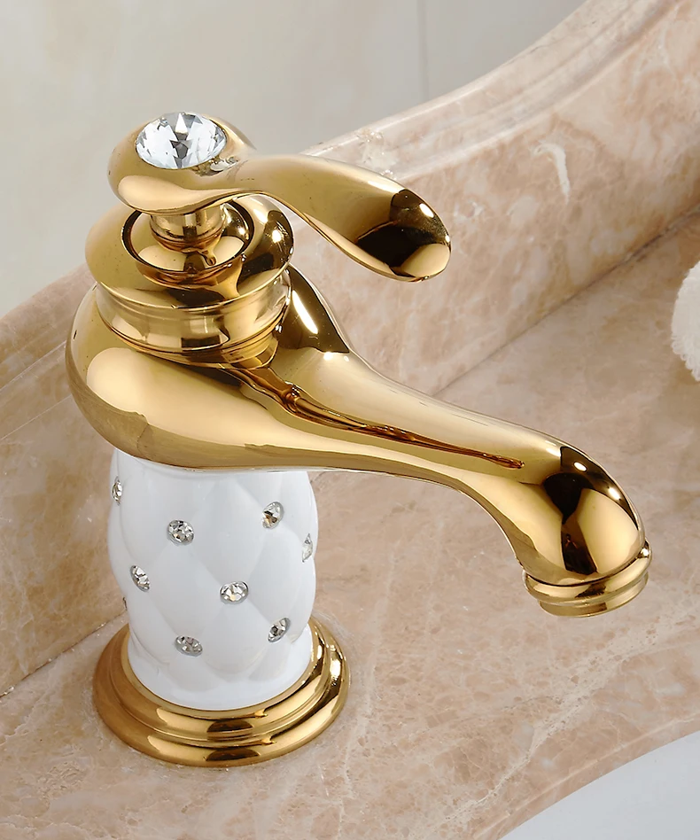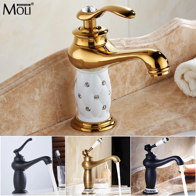 Смеситель для раковины MOLI, Золотой смеситель для раковины с одной ручкой, Алмазный смеситель для воды, кран для горячей и холодной ванны, хромированный латунный смеситель ML201