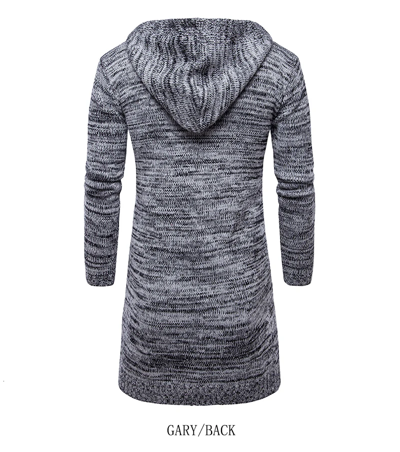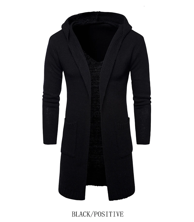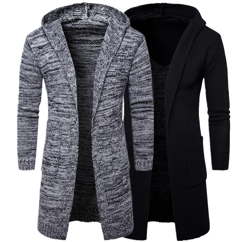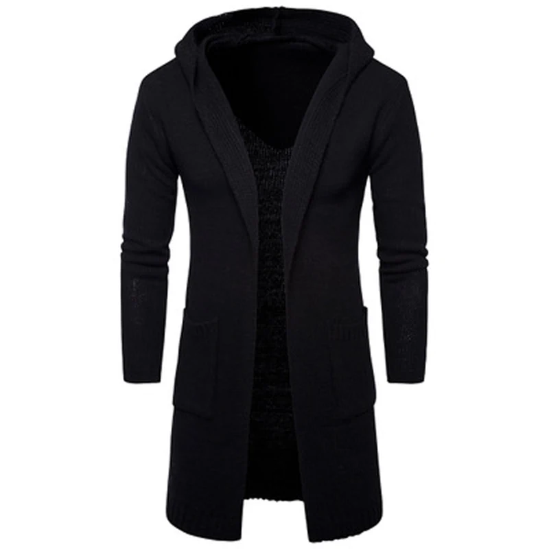 Мужской длинный кардиган с капюшоном, повседневный трикотажный кард...