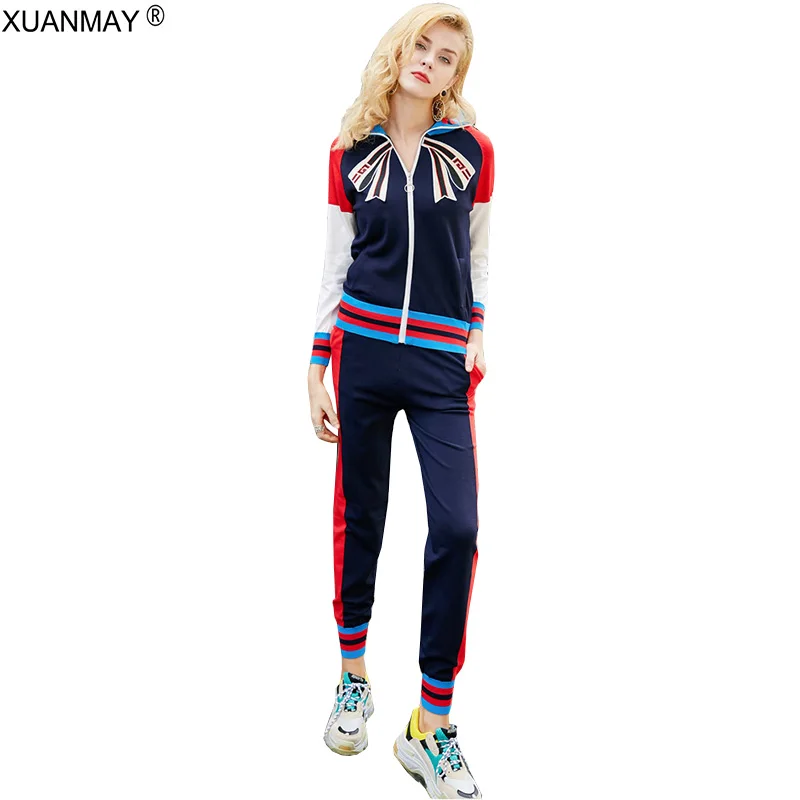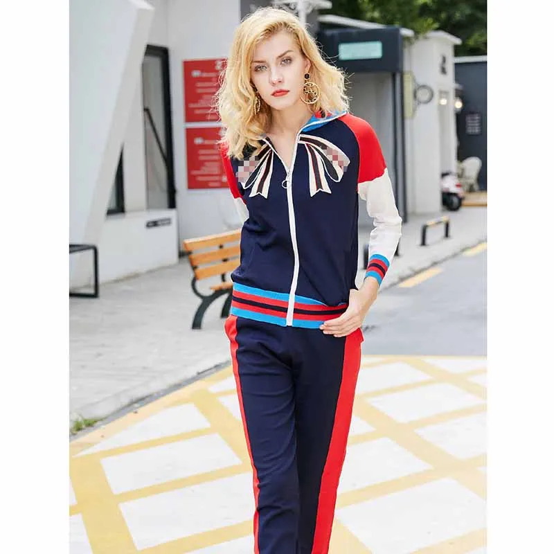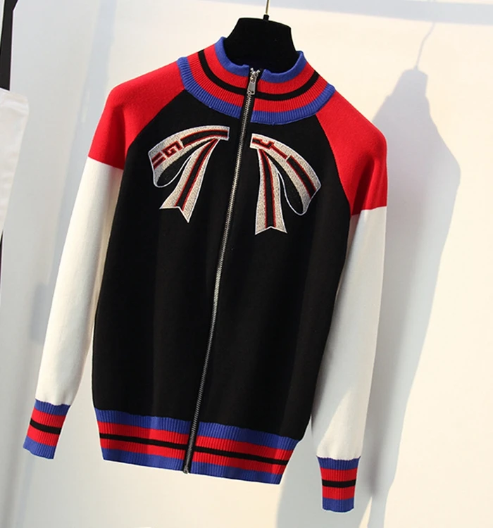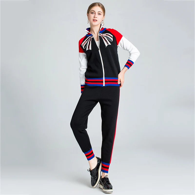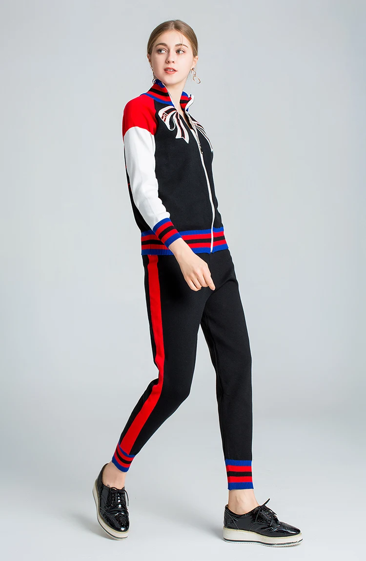 Осенняя молния кардиган свитер и брюки вверх и вниз из двух частей моды Сладкая дева с длинными рукавами кардиган верх