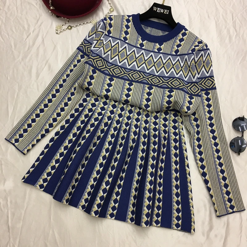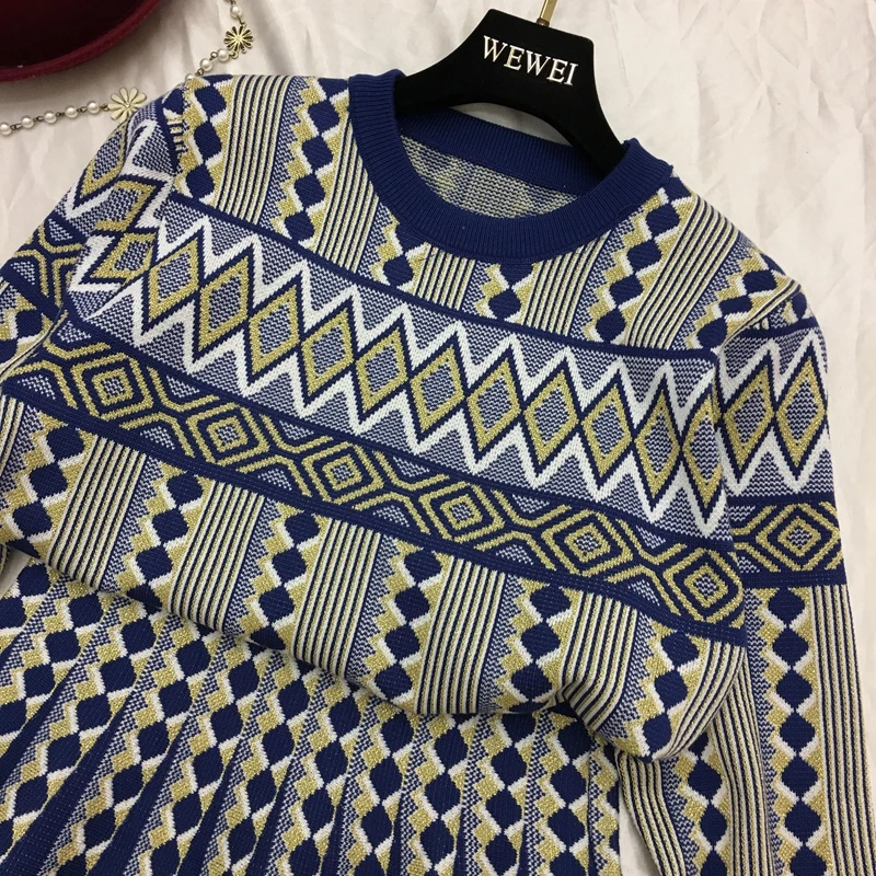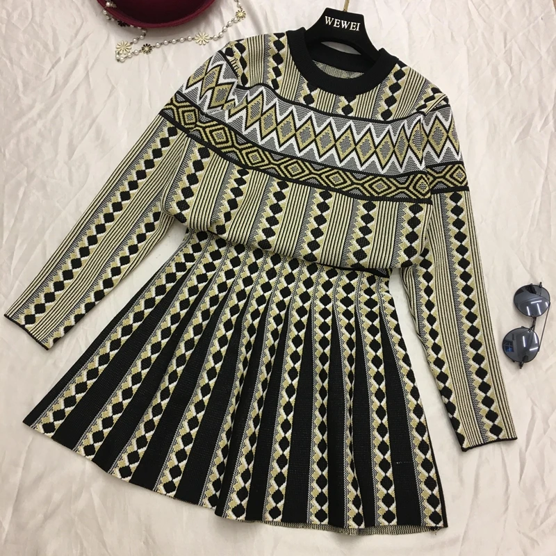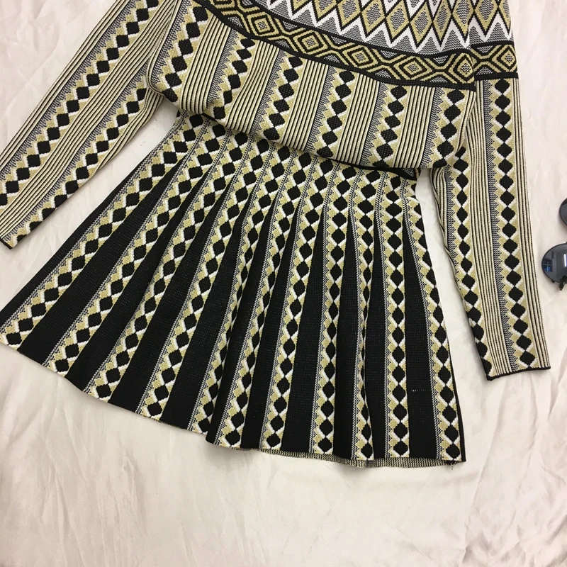 Женский Повседневный костюм ALPHALMODA, свитер и юбка с геометрическим принтом, вязаный пуловер + юбка, комплект на осень и зиму 2018
