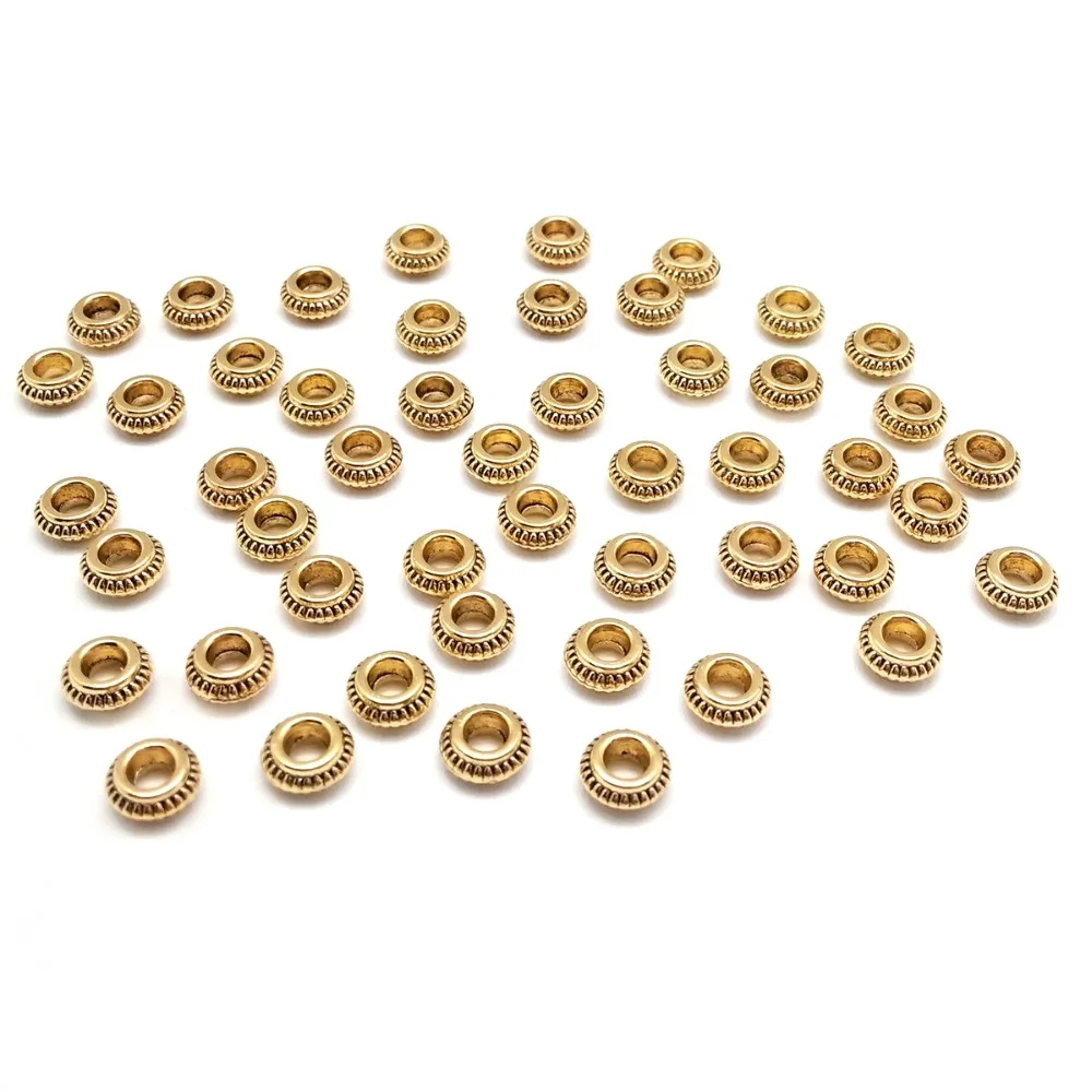 Круглые Металлические бусины из цинкового сплава, плоские бусины с отверстием для самостоятельного изготовления браслетов, ожерелий, ювелирных изделий, 7 х3 мм, 50 штук