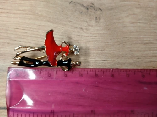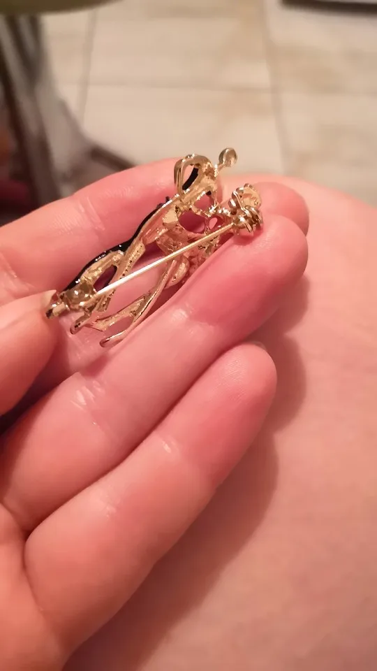 Заказ был сделан 12.11.20. Со скидкой обошлась в 36 рублей. Получила вместе с другими заказами на почте. Москва. Эмаль везде прокрашена. Высота 4 см. Небольшой косяк, как всегда: болтается застежка. Придётся пожимать самой. Иголочка без заусенцев, в меру острая. Очаровашка! С продавцом не общалась.