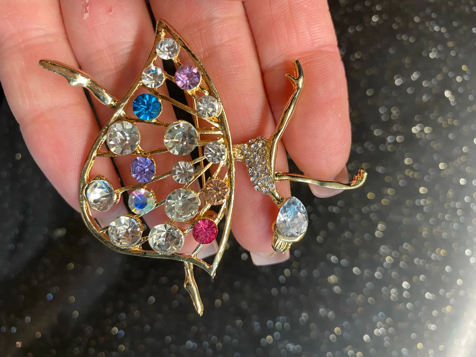 Красивая брошь, камни все на месте. Достаточно лёгкая. Быстрая доставка до Омска меньше месяца.