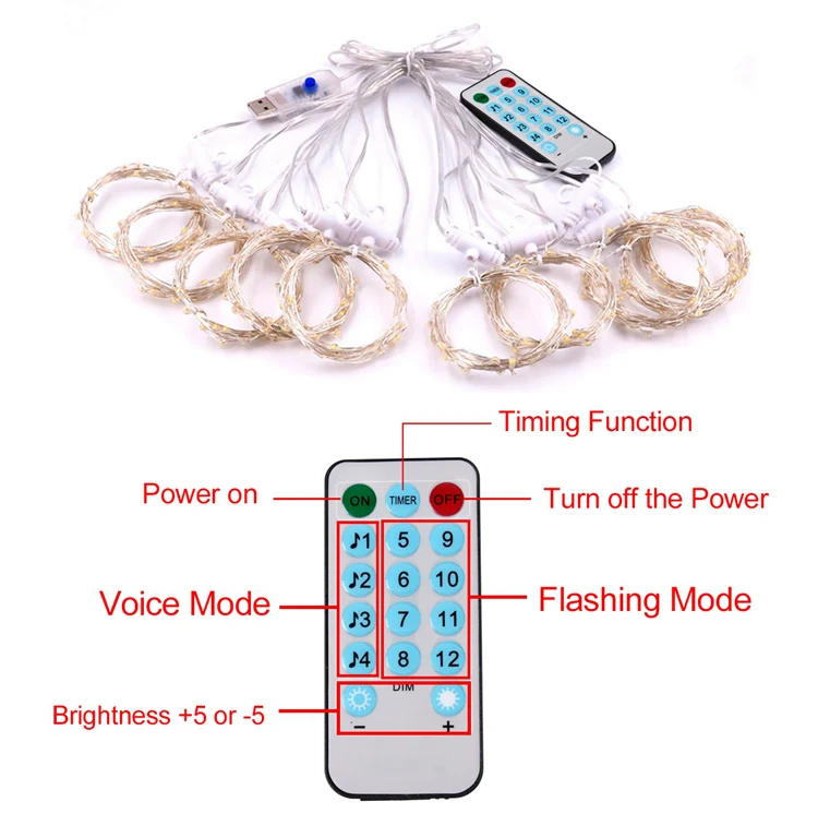 Тип переключателя: три типа (Вкл/Выкл/вспышка)(Чип на плате) Срок службы: 10000 часовПровод Цвет: прозрачныйСтруктура продукта: светодиодные лампы, провода, подвески