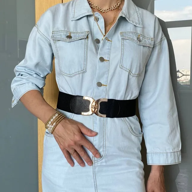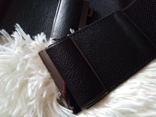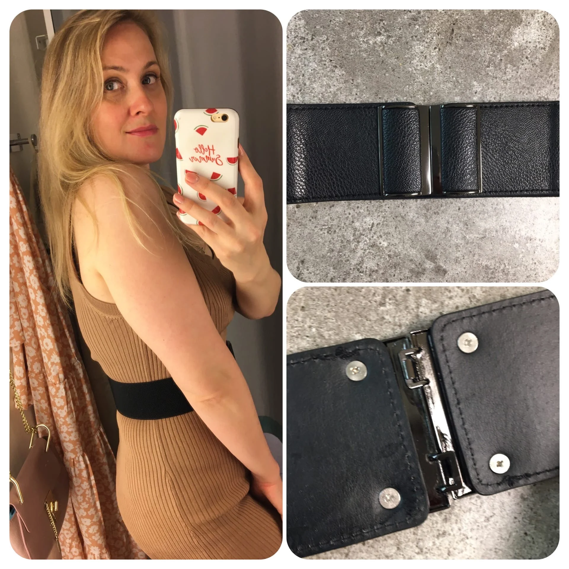 Пояс-резинка черного цвета, застегивается на вертикальную металлическую застежку. Купила https://s.click.aliexpress.com/e/_AK7DUZ Ширина ремня 6 см и это идеально для платьев или жакетов. Длина представлена в трёх размерах. У меня средний - 75 см, который может растягиваться до 130 см . Фурнитура надёжная - есть в золотом цвете, но этот цвет металла обязывает. Потому я выбрала цвет гематита - сдержанный и элегантный. И такую же простую застёжку. Таким поясом мы не только подчёркиваем талию, но и исправляем недостатки одежды - например, если в платье талия не на месте. Доставка службой Meest Express. В магазине большой выбор поясов, обязательно куплю ещё.