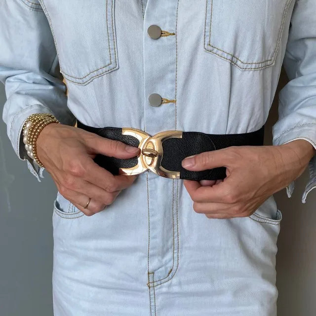 Стильный пояс в универсальном цвете, нужная деталь женского гардероба. Вообще чёрное с золотом выигрышный вариант. Качество, как всегда хорошее. Застежка хорошо держит, если пояс подобран по размеру. К покупке рекомендую, доставка копеечная и быстрая, с отслеживанием