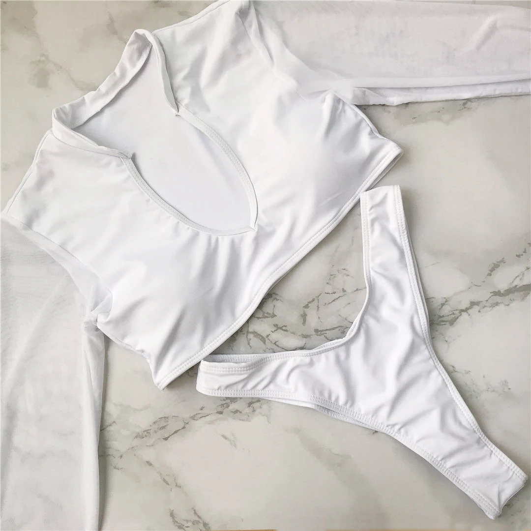 3 шт., сетчатый женский купальник бикини с длинным рукавом, женский...
