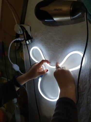 La banda de luces acepta bastante grado de flexibilidad. En mi caso creo que salvara casi por completo dos esquinas que tengo que salvar de 90 grados. Creo que esta bien impermeabilizada, ya que la quiero poner en la terraza de mi casa, y la unica pega es el cable de enchufe que es demasiado corto, pero lo solucionare con un alargador que he comprado a parte para llegar al enchufe de la propia terraza.