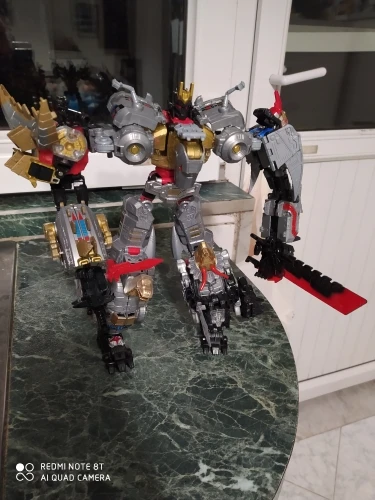 Прибывшие сегодня в одной коробке фигурки отлично смотрятся вместе в режиме робота. Цифры примерно такие же, как у оригинала G1, могут быть немного больше. Очень доволен своей покупкой