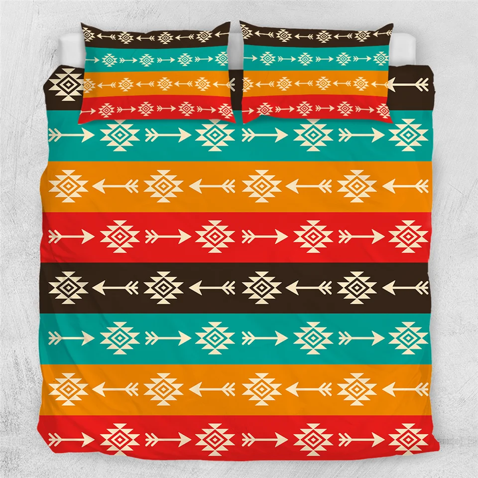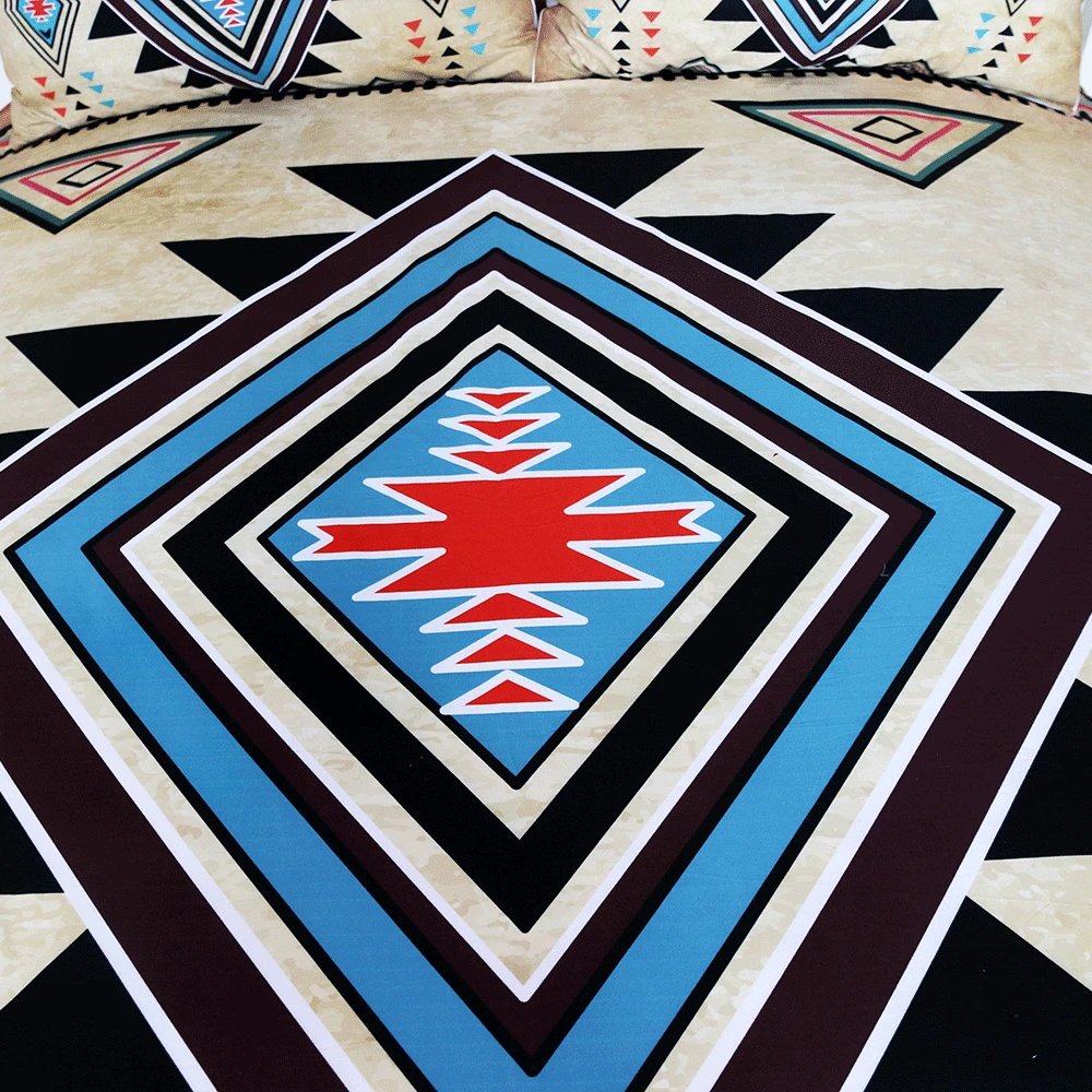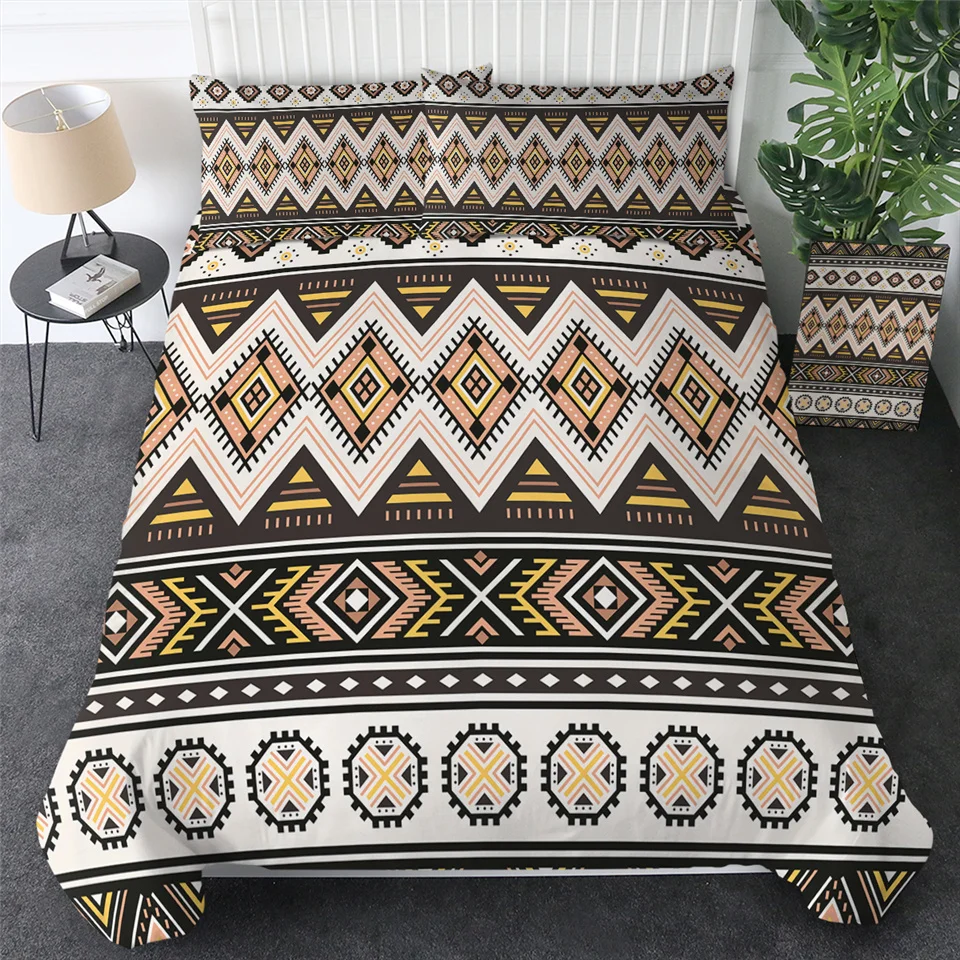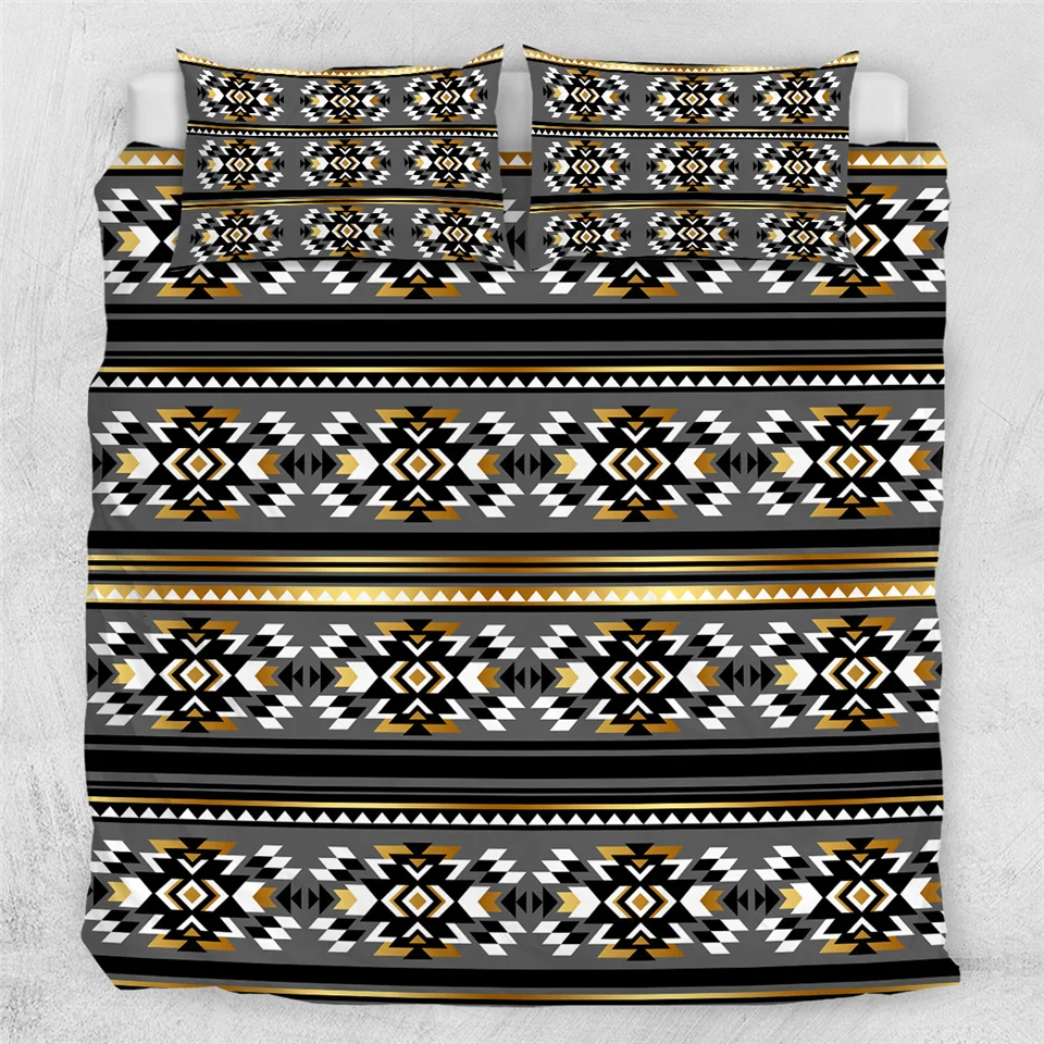 Постельные принадлежности, набор геометрических постельных принадлежностей королевского размера, пододеяльник для юго-запада, постельное белье ацтеков, 3 предмета, полиэстер, домашний текстиль, один