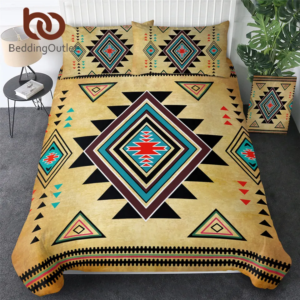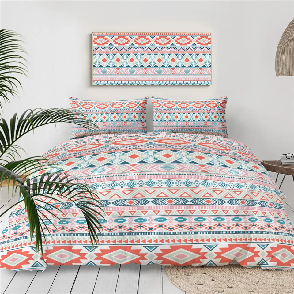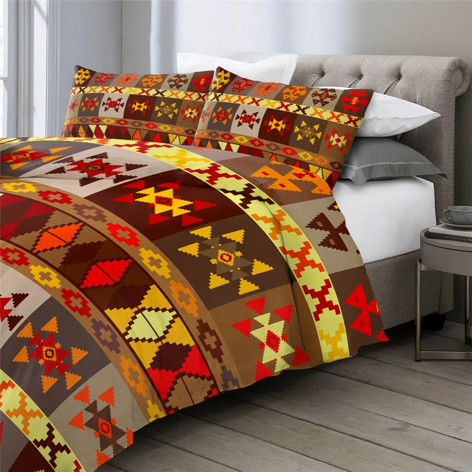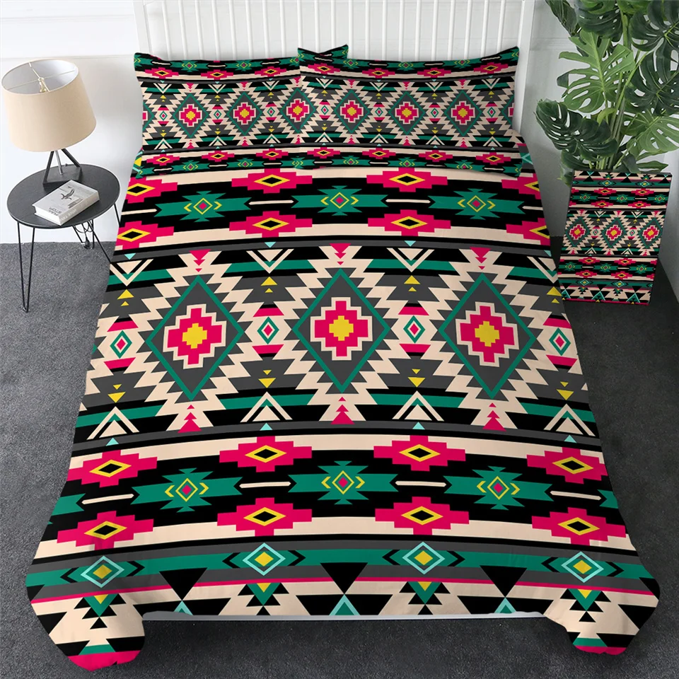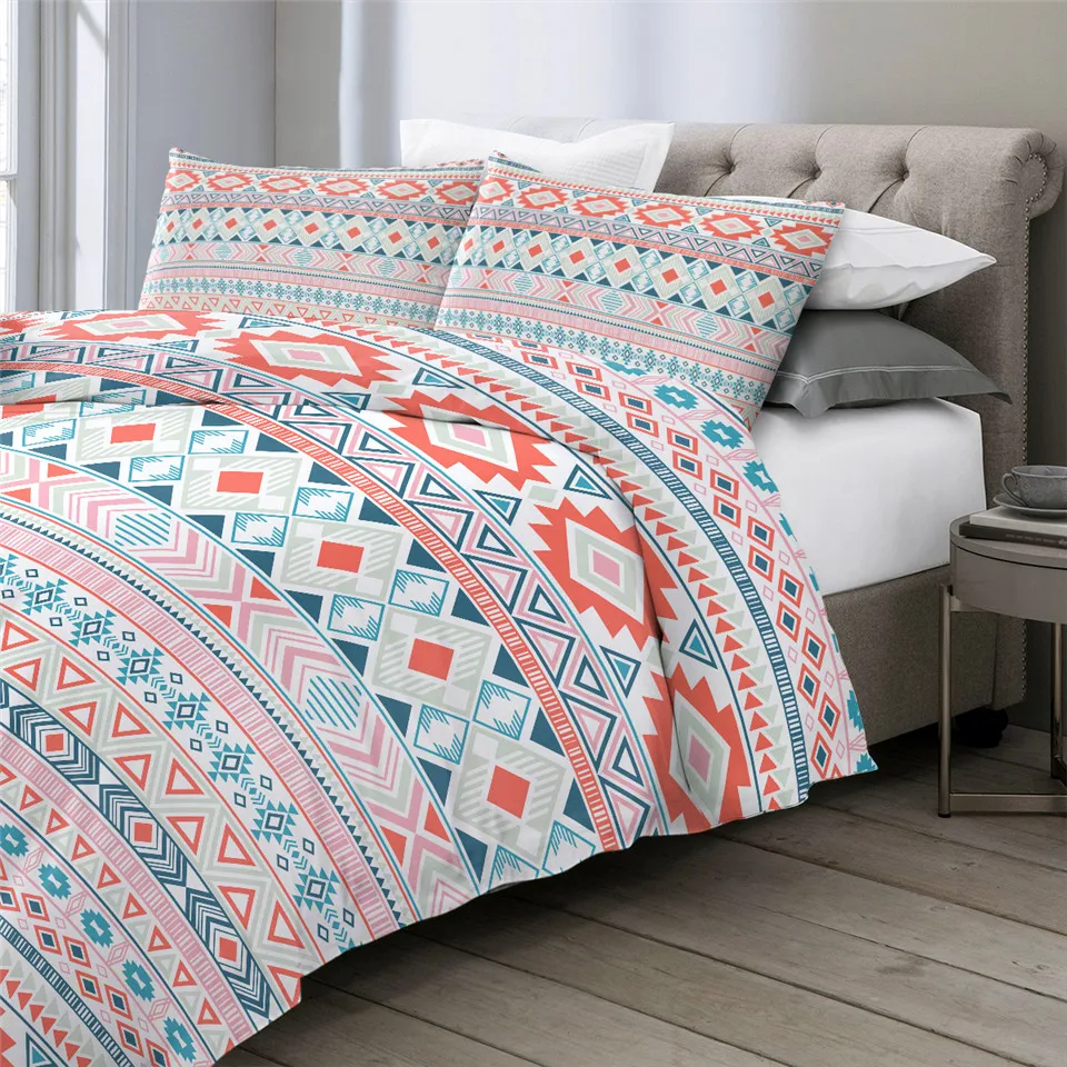 Постельные принадлежности, набор геометрических постельных принадлежностей королевского размера, пододеяльник для юго-запада, постельное белье ацтеков, 3 предмета, полиэстер, домашний текстиль, один