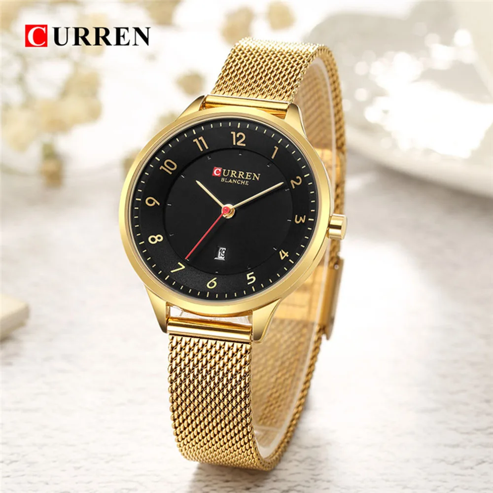 Женские кварцевые часы Curren, черные и золотые часы из нержавеющей...