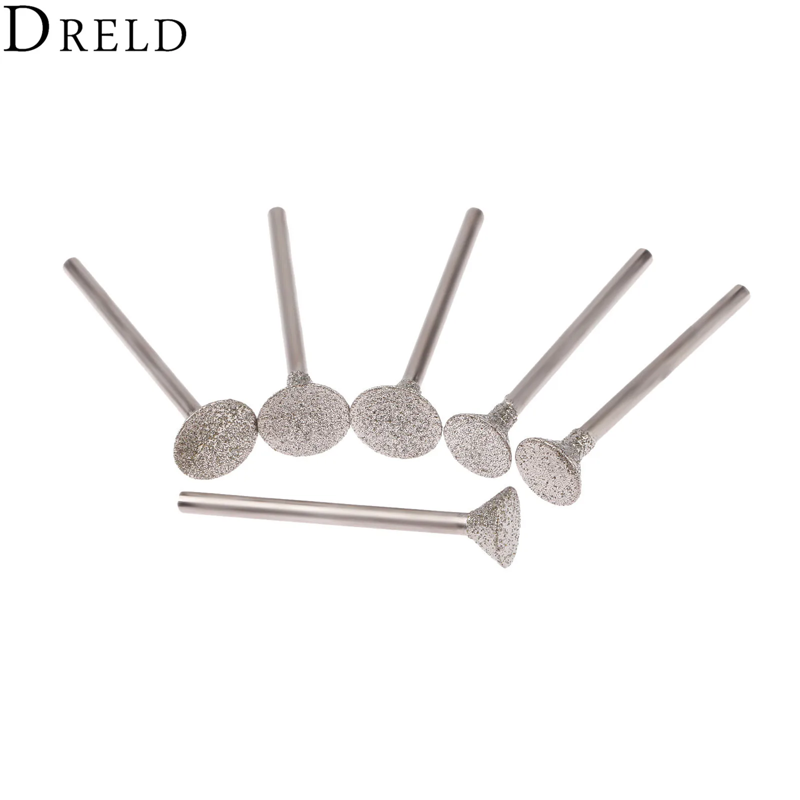 DRELD 6 шт. аксессуары для Dremel сверло алмазная шлифовальная головка сверла 3 мм хвостовик нефритовый инструмент для резьбы по камню полировки гравировки