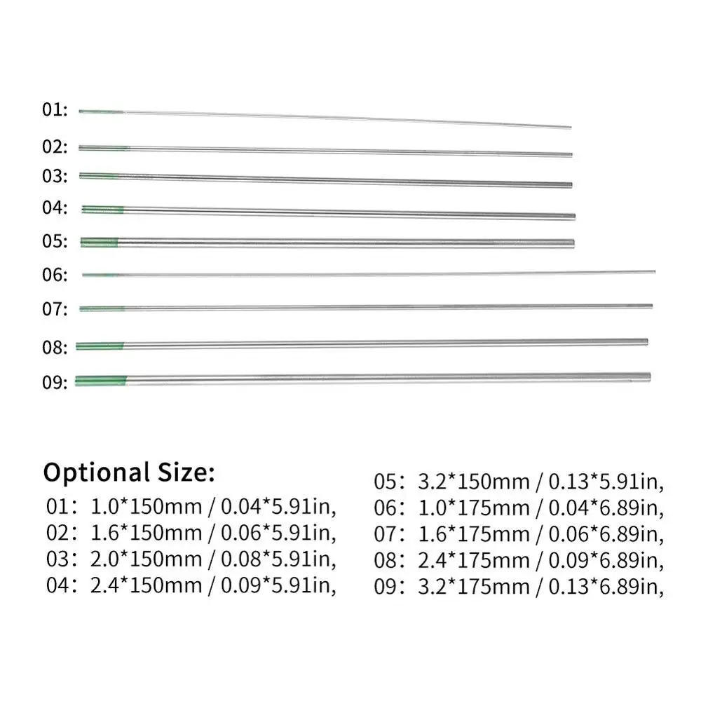 4. Обеспечить 9 размеров чистого вольфрамового электрода для удовлетворения ваших различных потребностей.