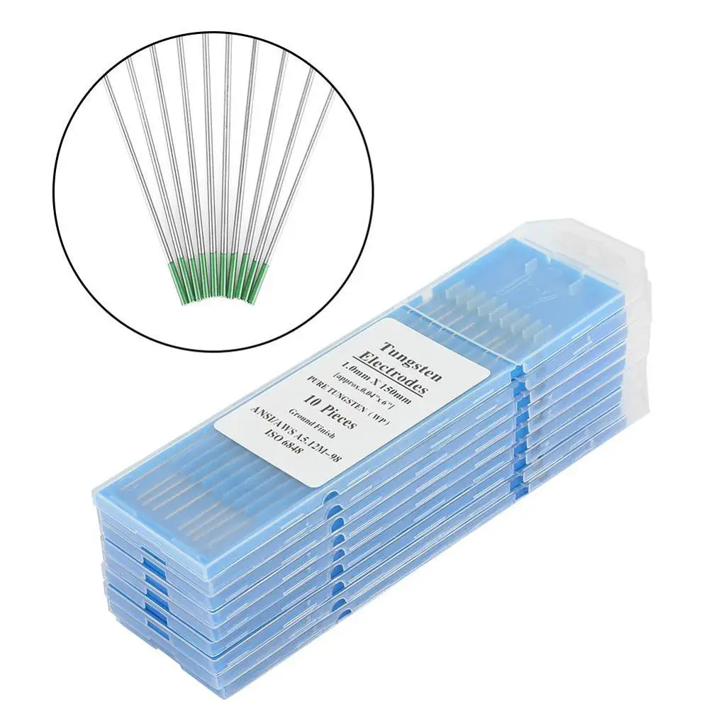 10 шт. чистые вольфрамовые электроды WP зеленый конец 1,0/1,6/2,0/2,4 мм для сварки Переменного тока Tig