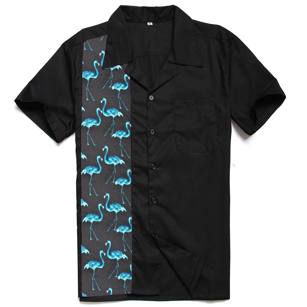 В западном стиле американские мужские хлопковые рубашки синего Фламинго блузка в ковбойском стиле, в стиле хип-хоп дизайнерские Винтаж вечерние клуб рокабилли