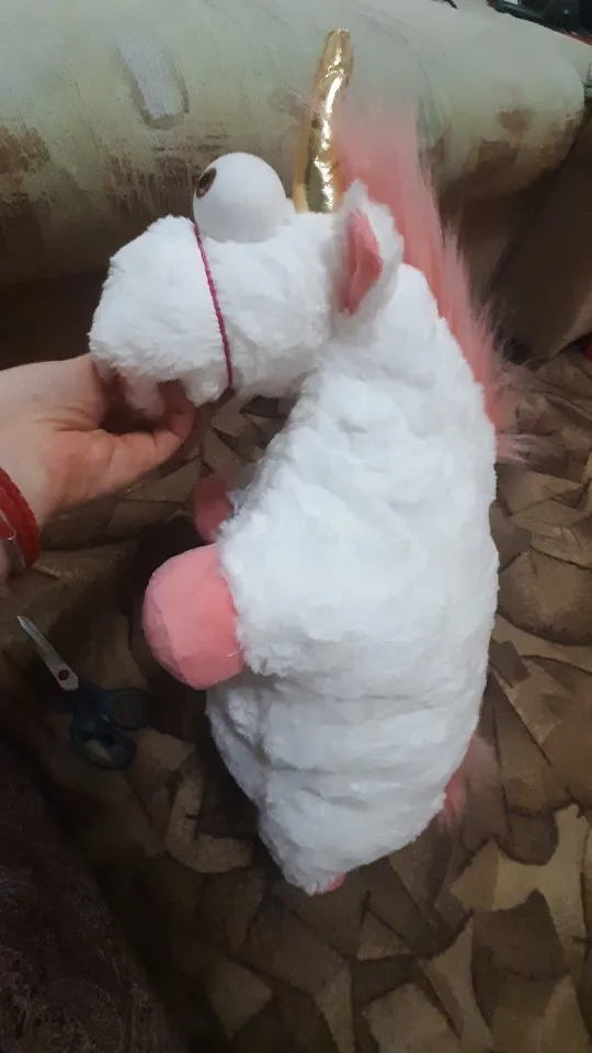Сам единорожек прекрасен, но качество упаковки настолько плачевное, что из-за него пострадал внешний вид. Упаковка была то ли вскрыта, то ли лопнула и единорог был весь в грязи. Пришлось стирать, чтобы привести его в порядок. Хорошо, что все отстиралось. Но впечатления испорчены
