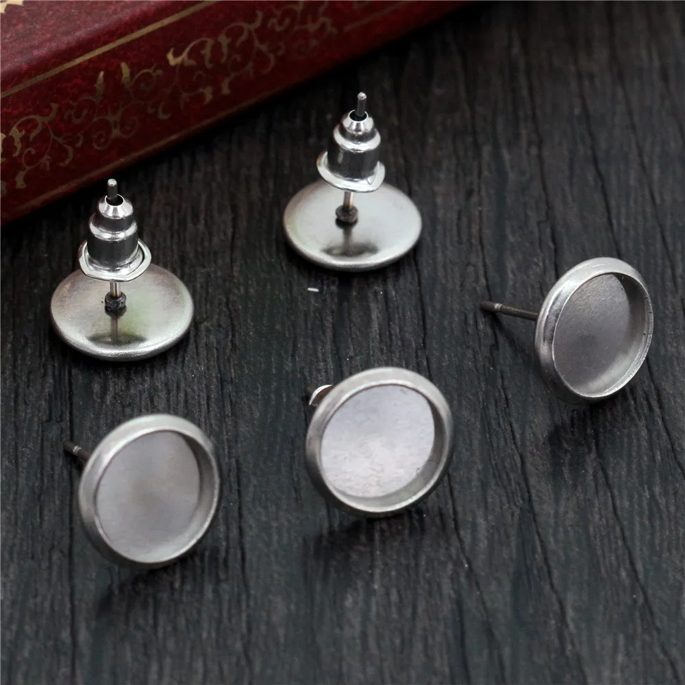 (Никогда не выцветает) 68101214161820 мм серьги из нержавеющей стали базовые шпильки для ушей Камея Настройки Кабошон базовый лоток пустой (с задней частью)