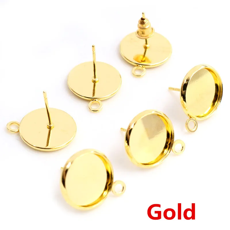 12 мм 30 шт золотистого бронзового родия посеребренные цвета из нержавеющей стали серьги шпильки (с заглушкой уха) основание, подходит 12 мм стеклянные кабошоны