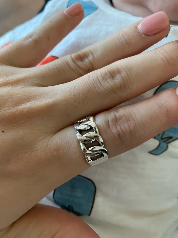 Фотография очень обманчива, чтобы сделать кольцо подходящим, он подходит только моему розовому пальцу, в противном случае мне придется вытянуть его вдали...