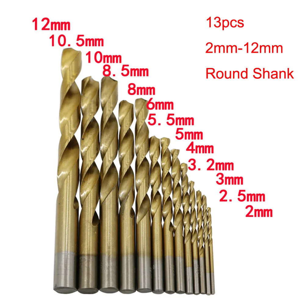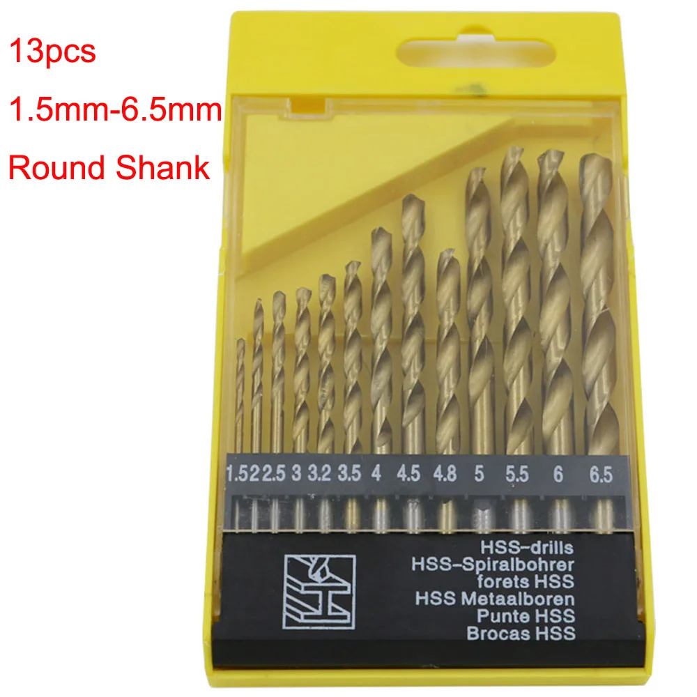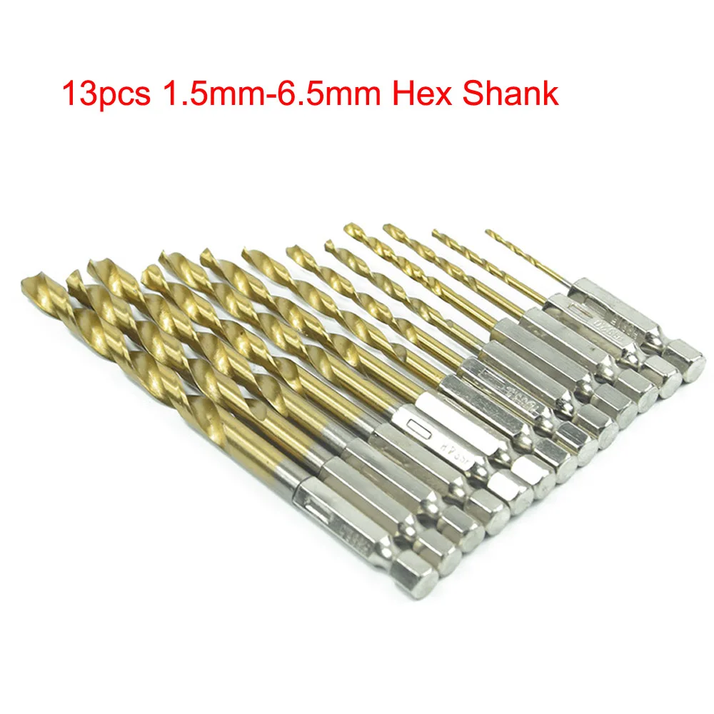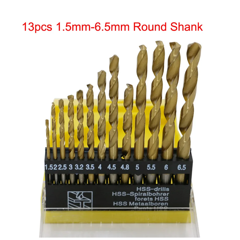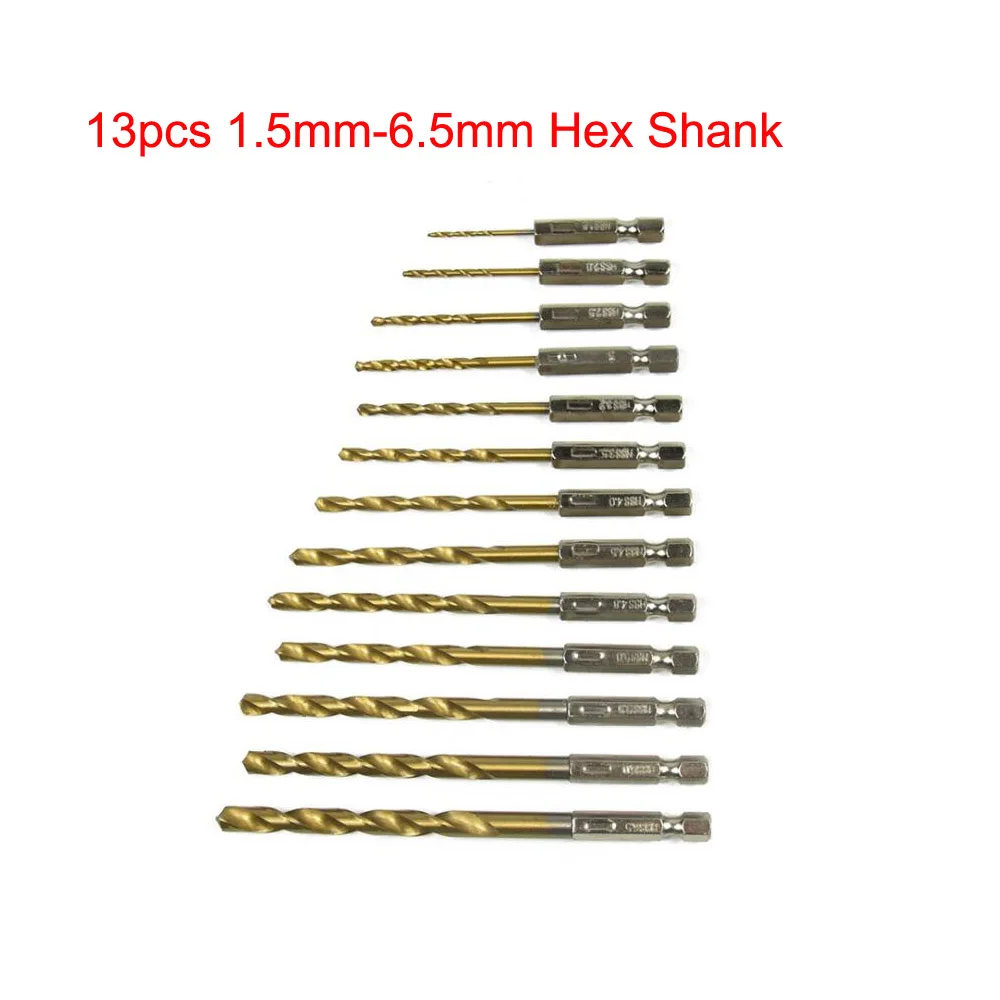 13 шт.компл. мини спиральные сверла из быстрорежущей стали с титановым покрытием набор сверл для деревообработки металла пластиковые инструменты 1,5-6, 5 мм2-12 мм шестигранный Круглый хвостовик