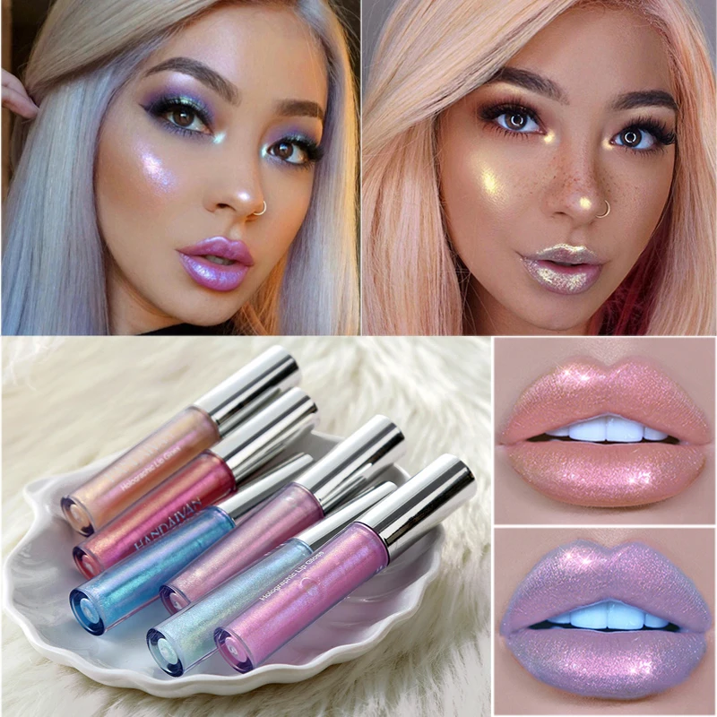 Голографический блеск для губ, Макияж для губ, водостойкий блеск для губ русалки, блестящая жидкая губная помада, Обнаженная татуировка, блеск для губ