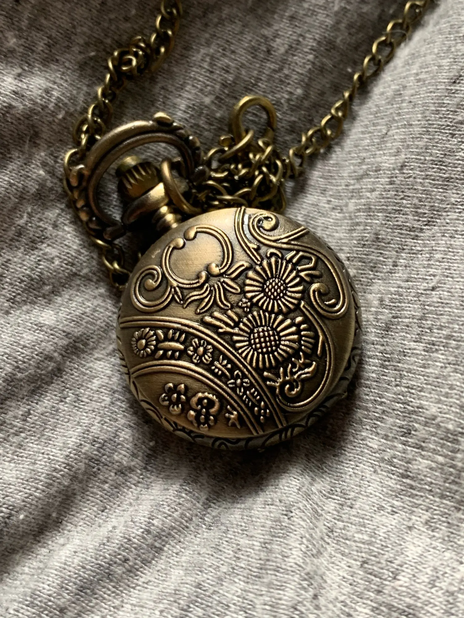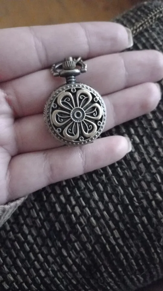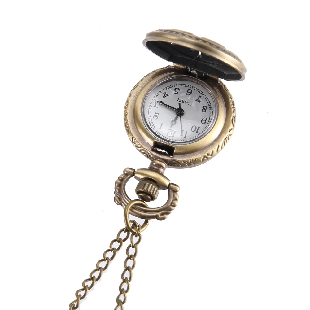 Винтажные карманные маленькие часы, кварцевые часы бронзового цвета, крутые полые часы с цветком и цепочкой LXH