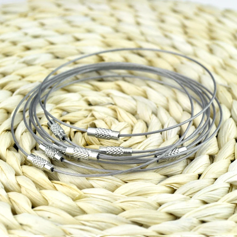 50 шт./лот, 9 дюймов, серебро, 1 мм, нержавеющая проволока, кабель, сталь, цепочка, браслет, шнур, винт, застежки, браслет, сделай сам, ювелирное изделие