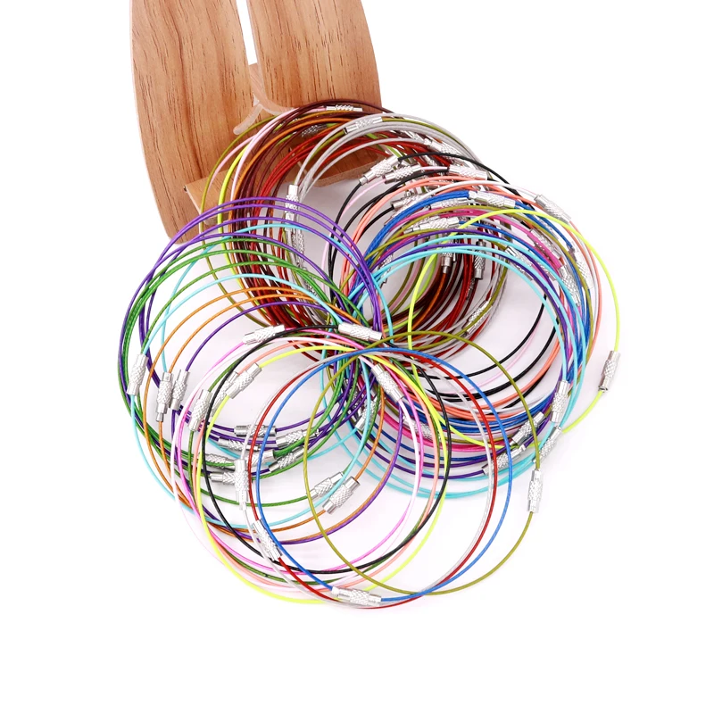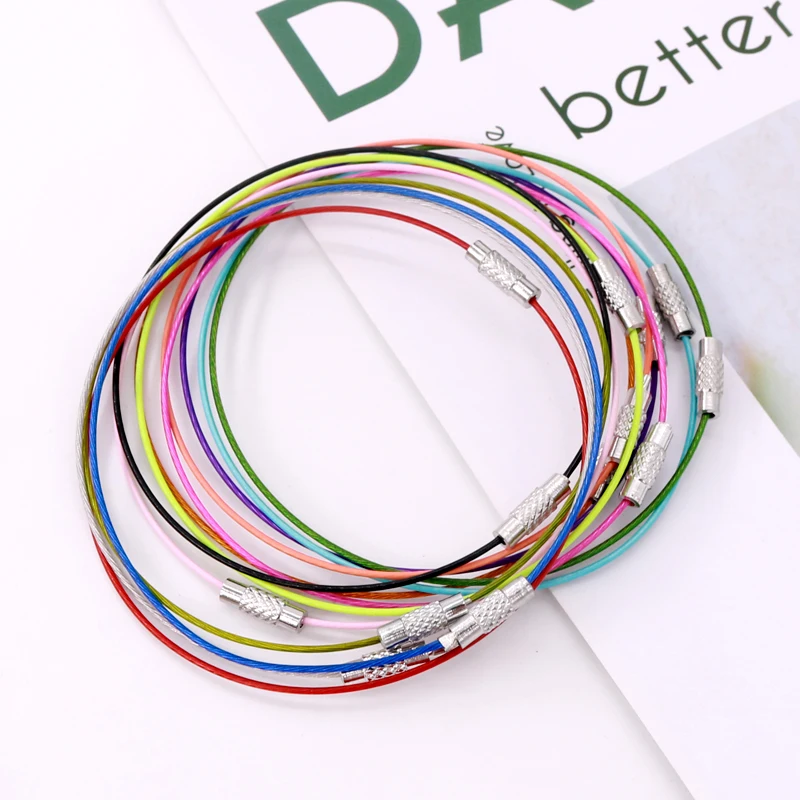 Оптовая продажа, 50 шт.лот, 1 мм, стальной трос, браслет, шнур, веревка, цепочка, чокер, ювелирные браслеты, сделай сам, шнуры, 9 дюймов, разные цвета