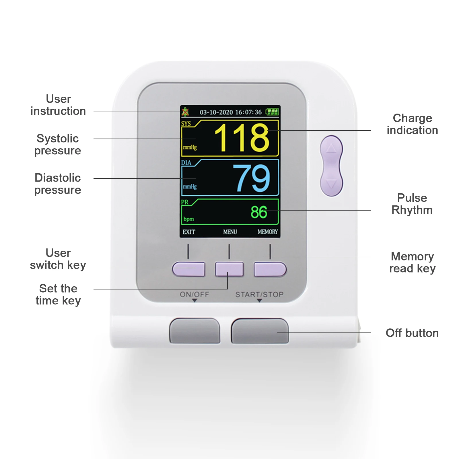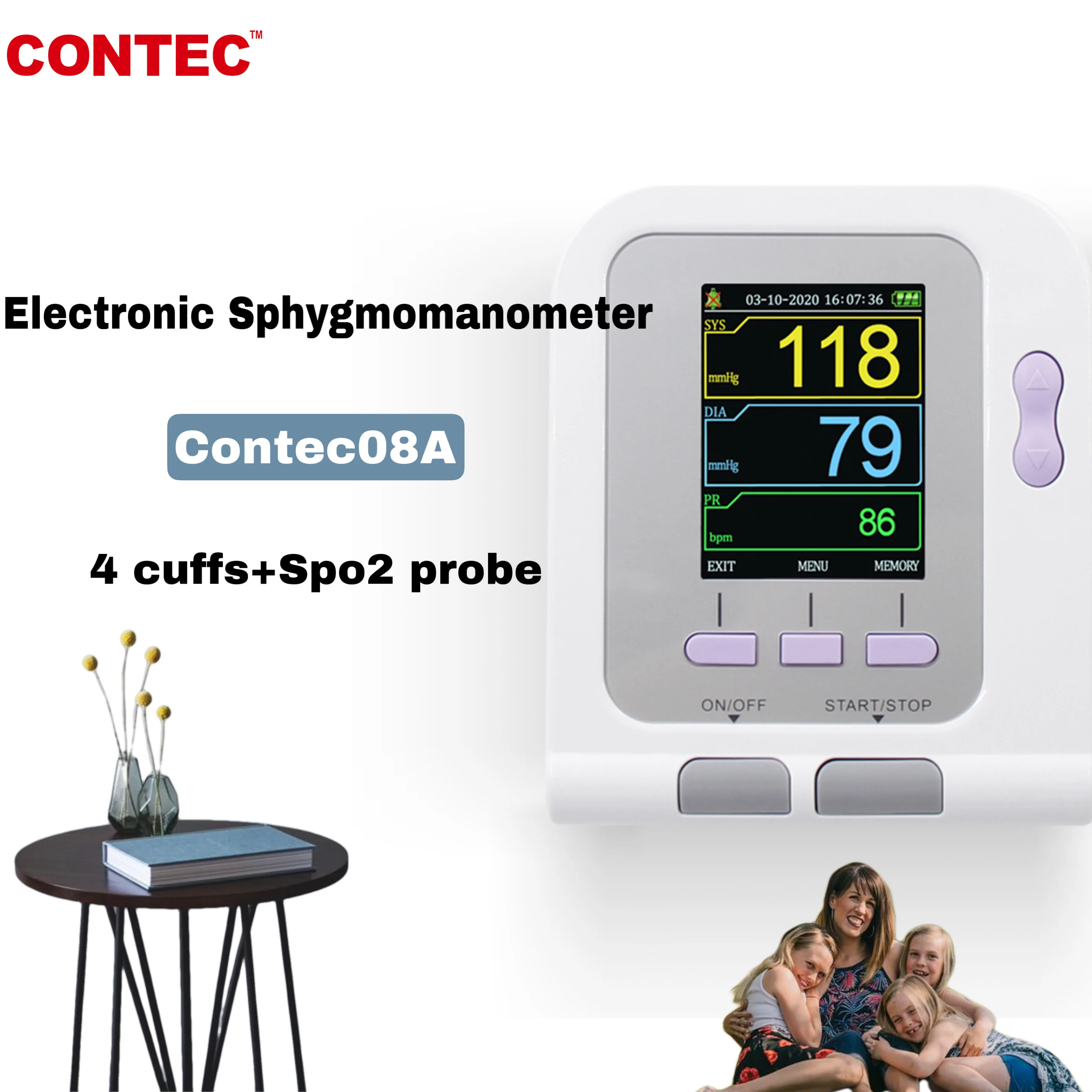 CONTEC08A-это настольный электронный сфигмоманометр, цветной ЖК-дисплей высокой четкости, поставка английского/китайского интерфейса, сильная видимость. Полностью автоматическое измерение артериального давления, это может быть домашний сфигмоманометр, который используется для взрослых, детей и новорожденных. Устройство имеет функцию измерения параметров, отображения и записи вывода, а также принимает интерфейс обзора данных, такой как «Список данных», «трендовая диаграмма»,» Большой шрифт ", с функцией измерения SpO2 (с дополнительным зондом SpO2). Он может быть применен к clinique, физическому центру и ежедневному медицинскому обслуживанию членов семьи.